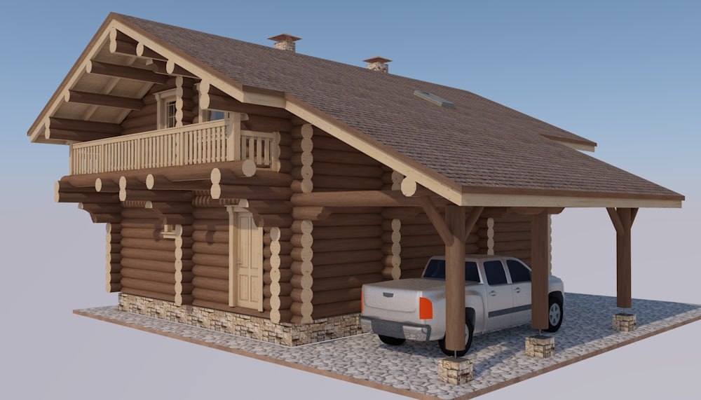 a profiled timber estate in a birch grove at dawn