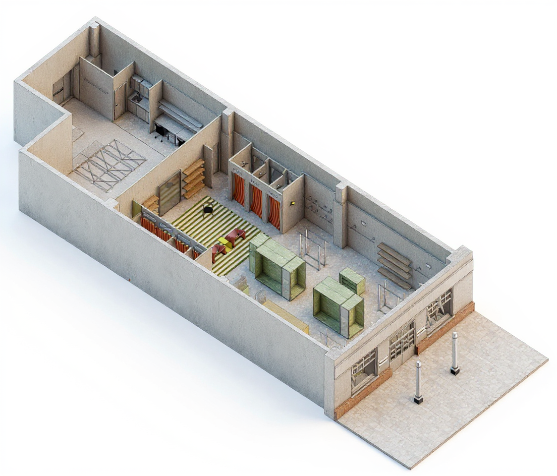 lot of reflects and sun light the sun illuminates the facade that we see some trees and a street of marseille in the backgroung facade more in the light more reflect all is painted no stone the fence call is beige like the extension more shadows of trees on the facade my point of view