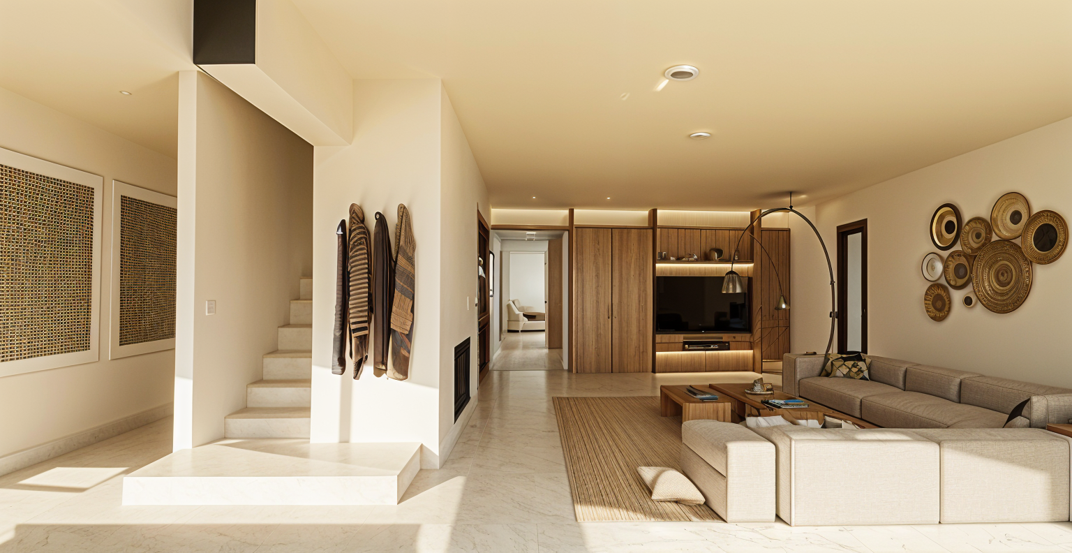 realistic render cloudy sky simple shrubs manicured lawn wooded background architecture