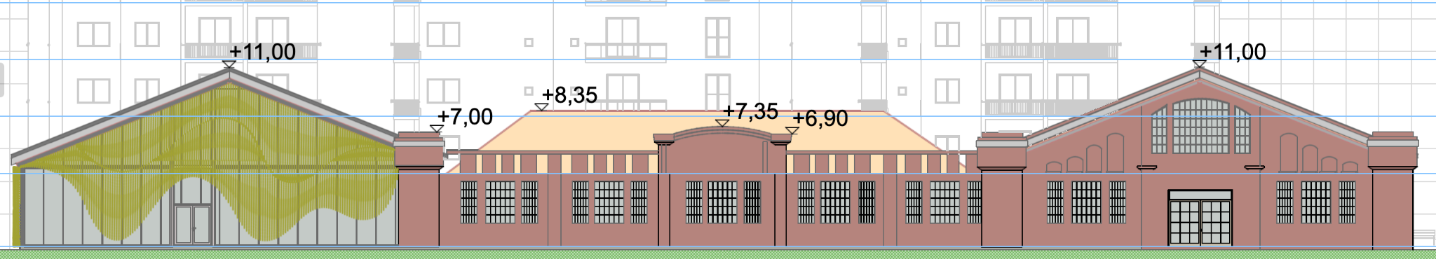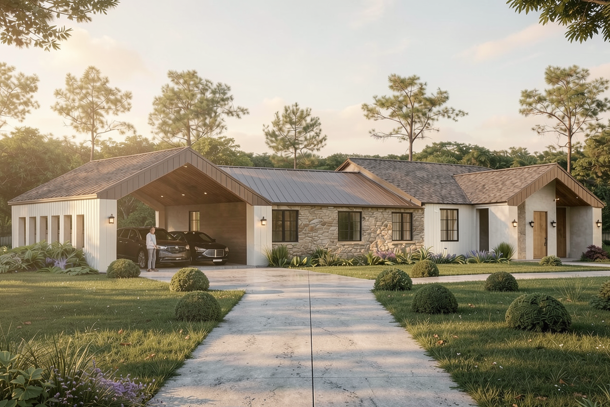 render a futuristic modern building with sharp angles and a unique v shaped design use sleek glass panels with hints of reflective silver and metallic gray to create a contemporary aesthetic incorporate elements of dark slate and charcoal for the structural beams set the atmosphere during a clear sunset casting a warm golden glow on the glass surfaces with a gradient of deep blues and purples in the sky add soft ambient lighting to emphasize the building s innovative architecture