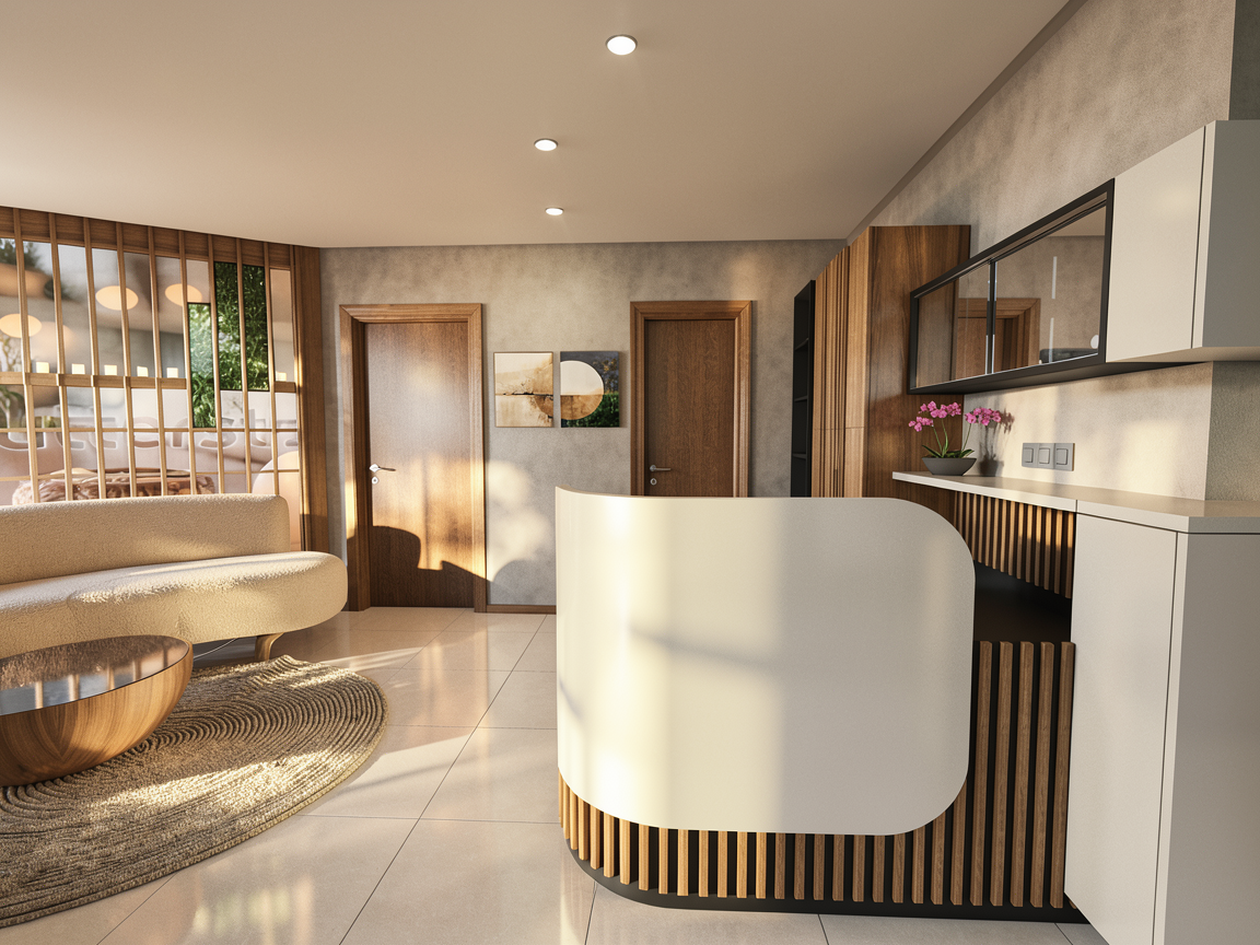 architectural drawing preserve original linework and proportions transform into atmospheric architectural illustration soft watercolor background misty forest landscape desaturated earthy tones minimal color palette add depth and texture subtle shadows light fog artistic composition collage style silhouettes of people trees in background birds in the sky calm mood nordic minimalism hand drawn feeling high detail soft lighting