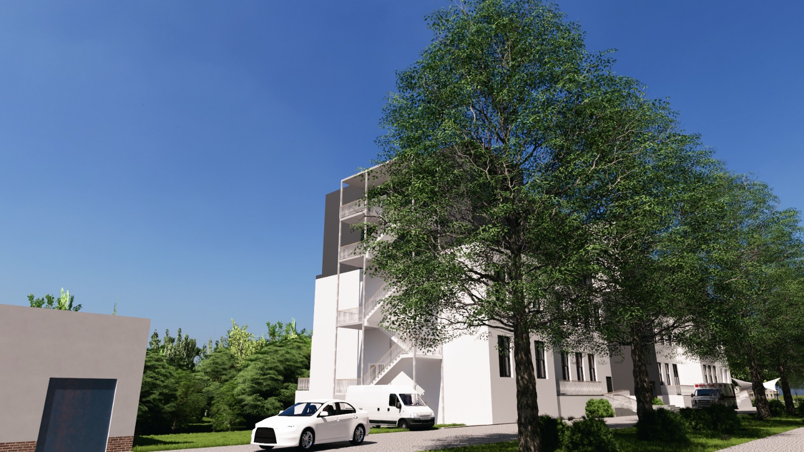 nicholas grimshaw exterior shot add interiors to windows add street lamps add garden furniture for disabled add people silhouettes architecture