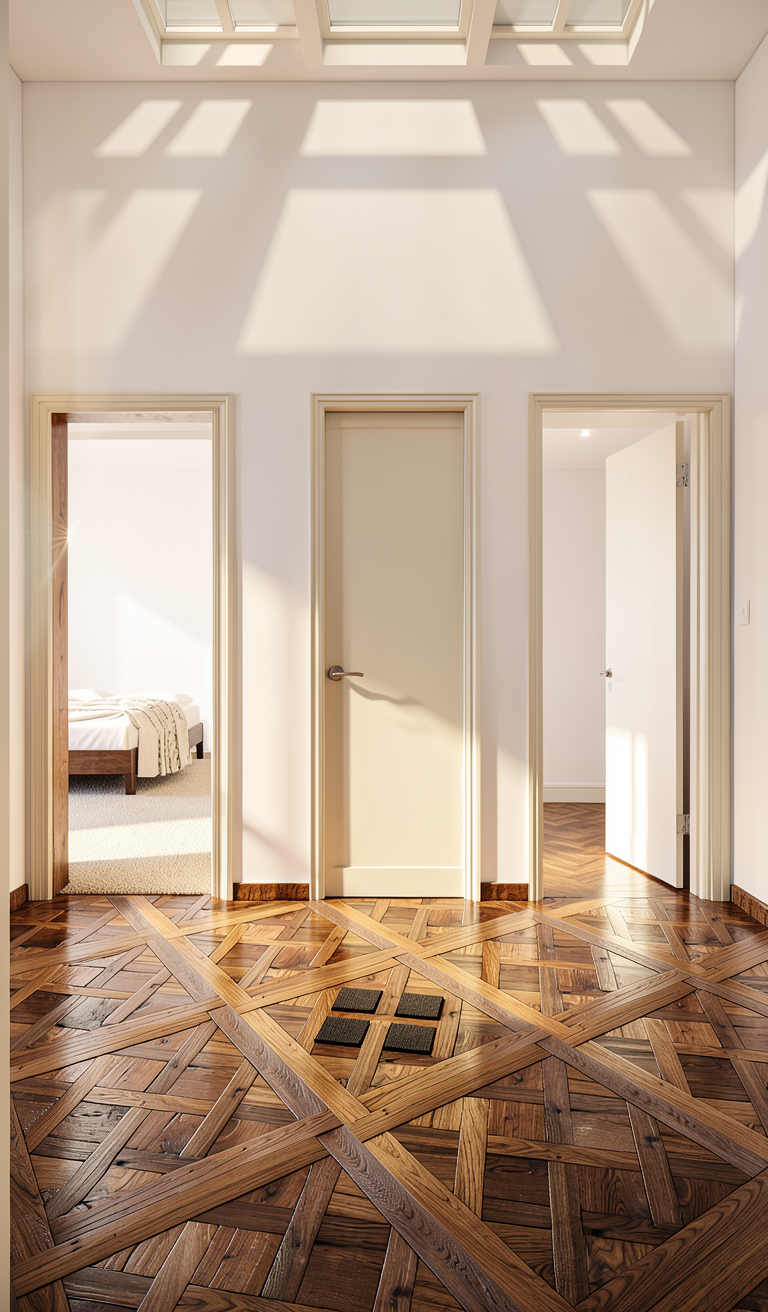 put the checkered floor more black and white not black and gray put the walls in a rich white not gray put all the woodwork and doors in a lighter rich beige wood not brown