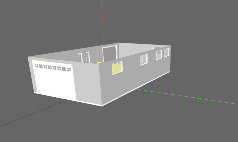 please add this garage near modern house to real enviroment open door on half car inside white plaster on garage and antracit wall and windows