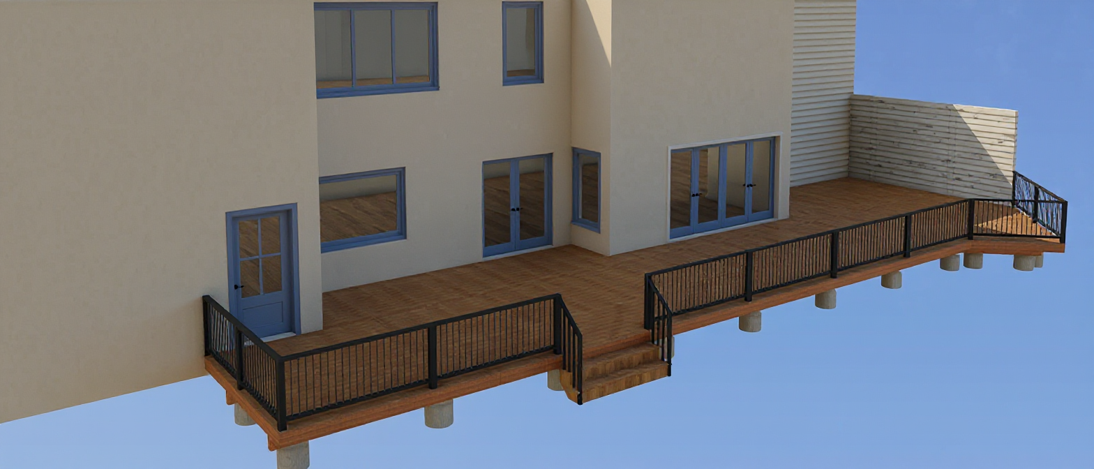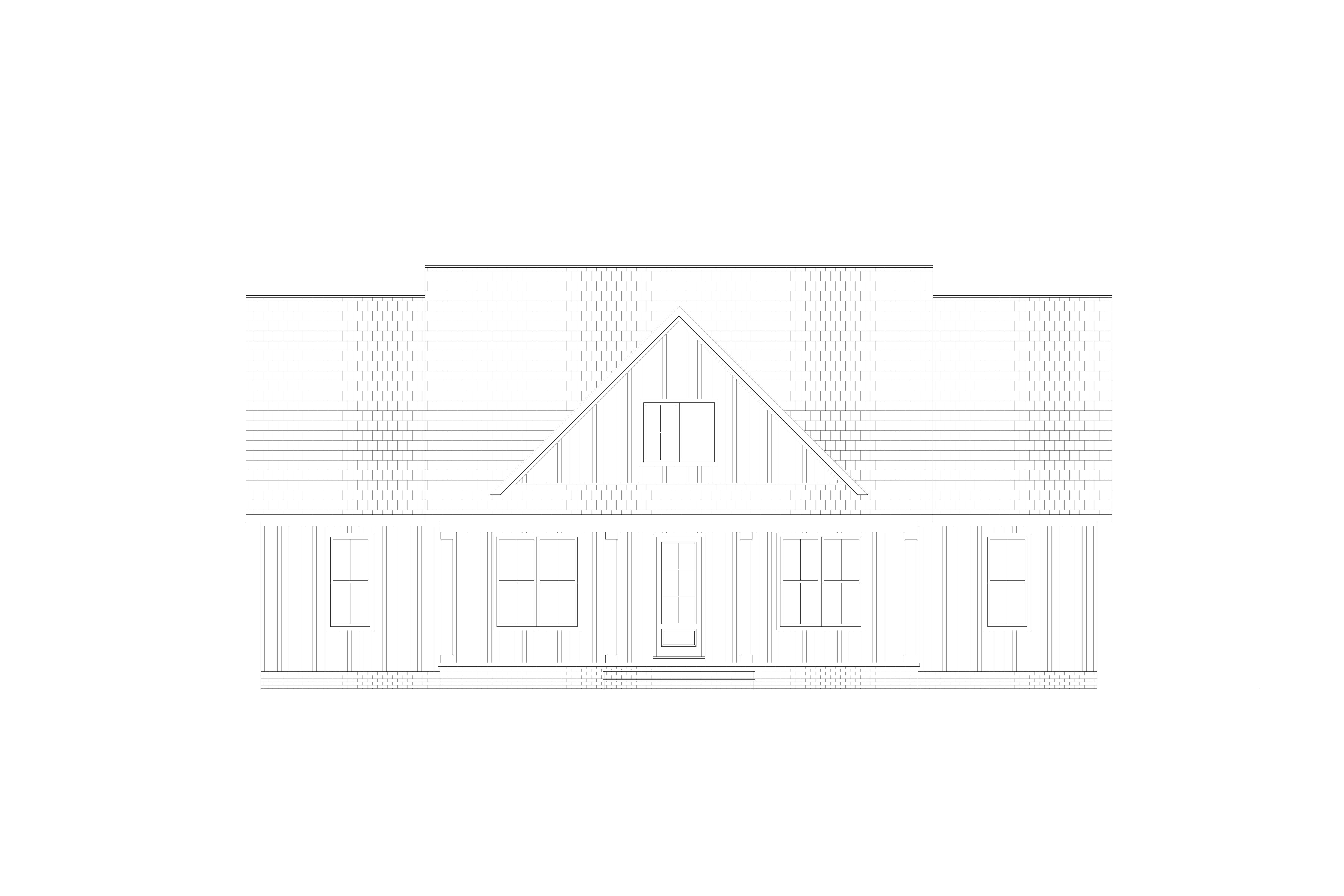 dark grey brick foundation white windows white trim black shingle roof grey siding white porch post and beams make realistic