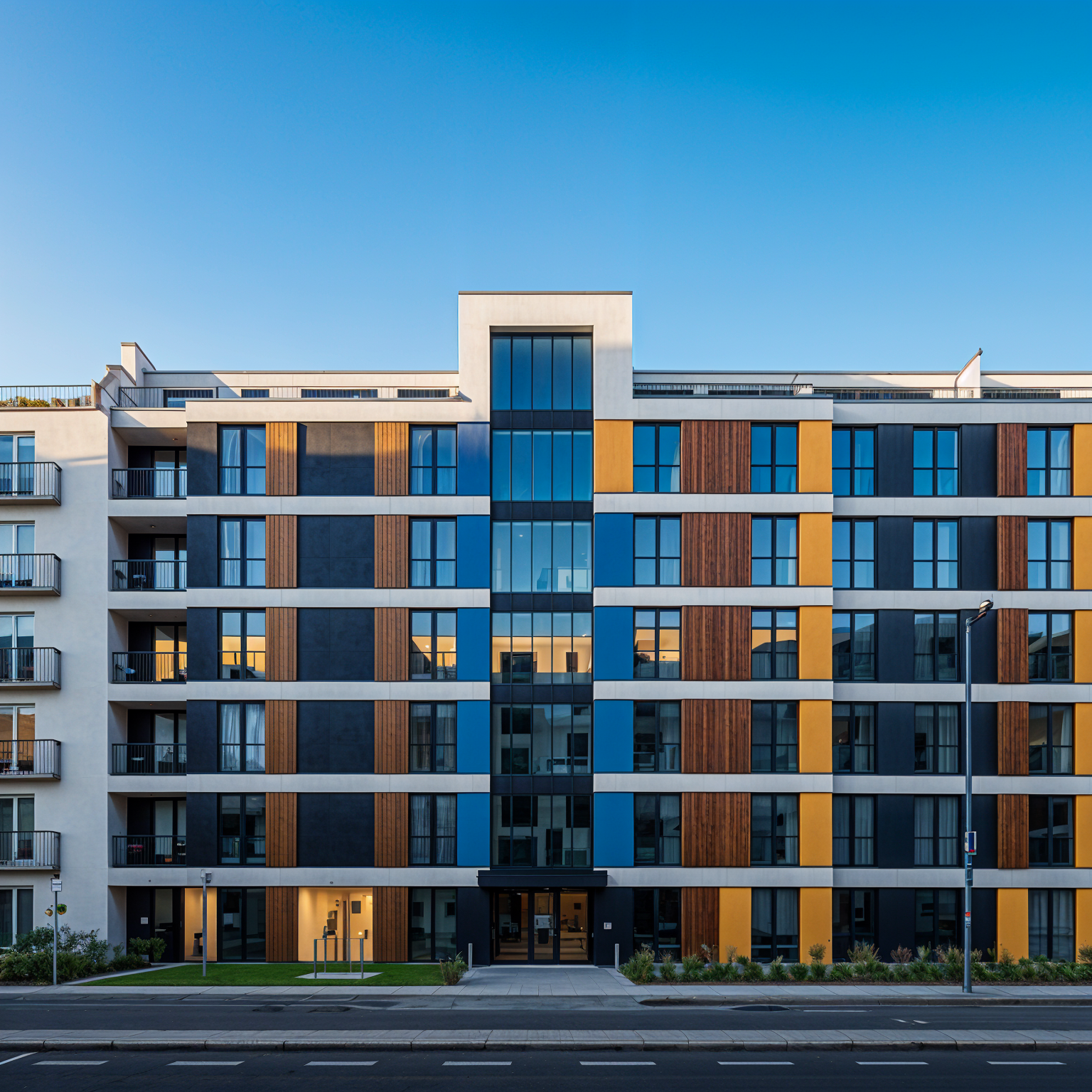 please make this image as photo realistic visualization of exposition in a way that exposition is made from very different color and texture wood pdf plywood etc do not change image proportions green pillows make from very different sensory materials fabric moss fur etc