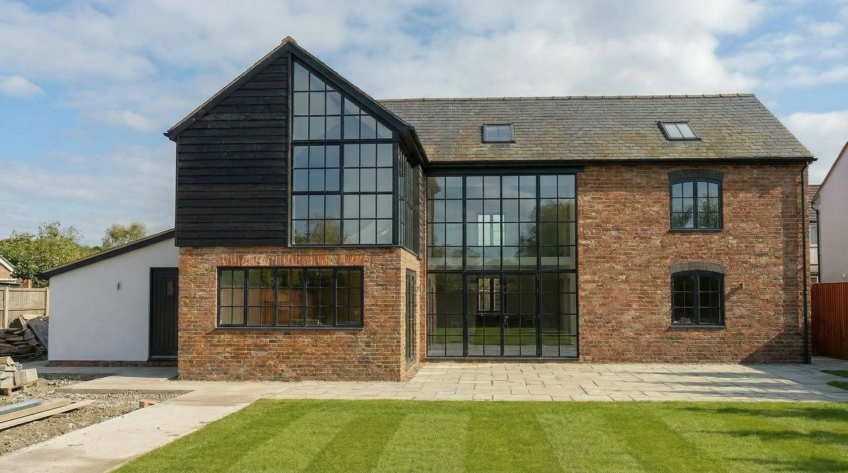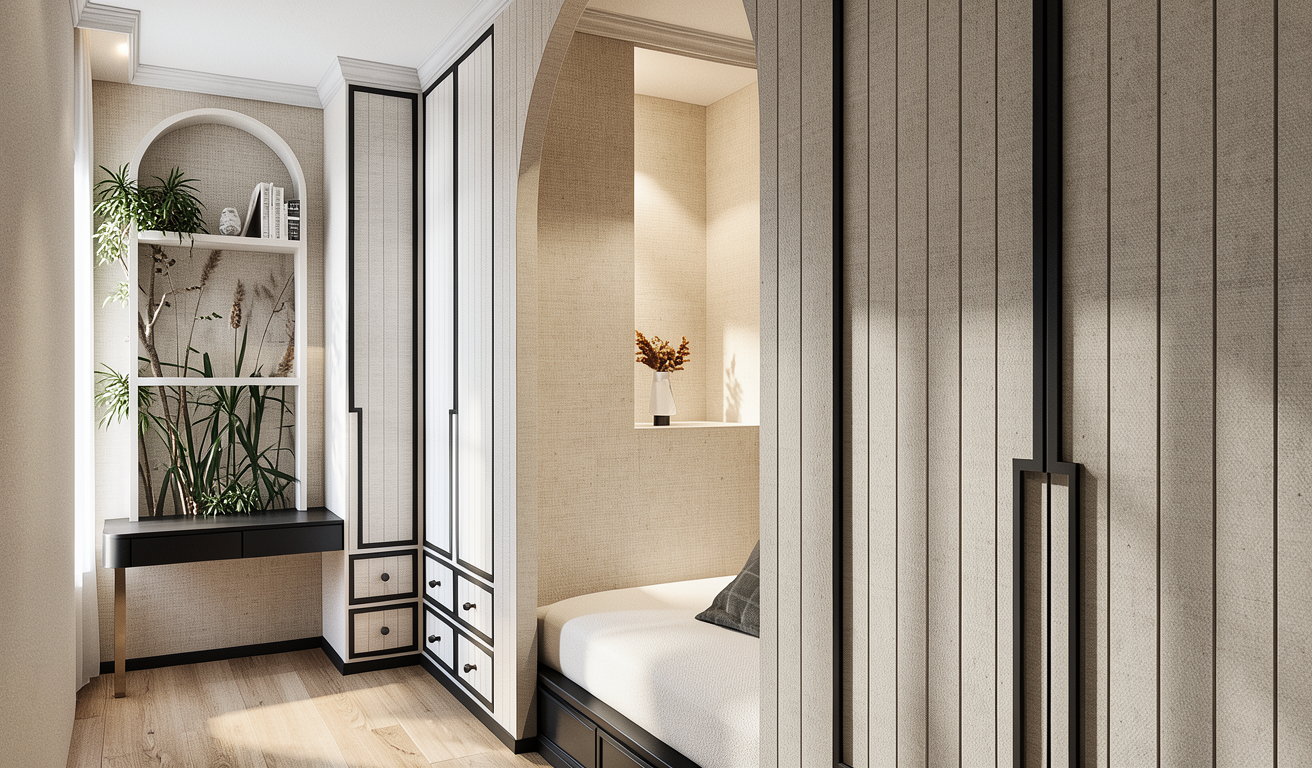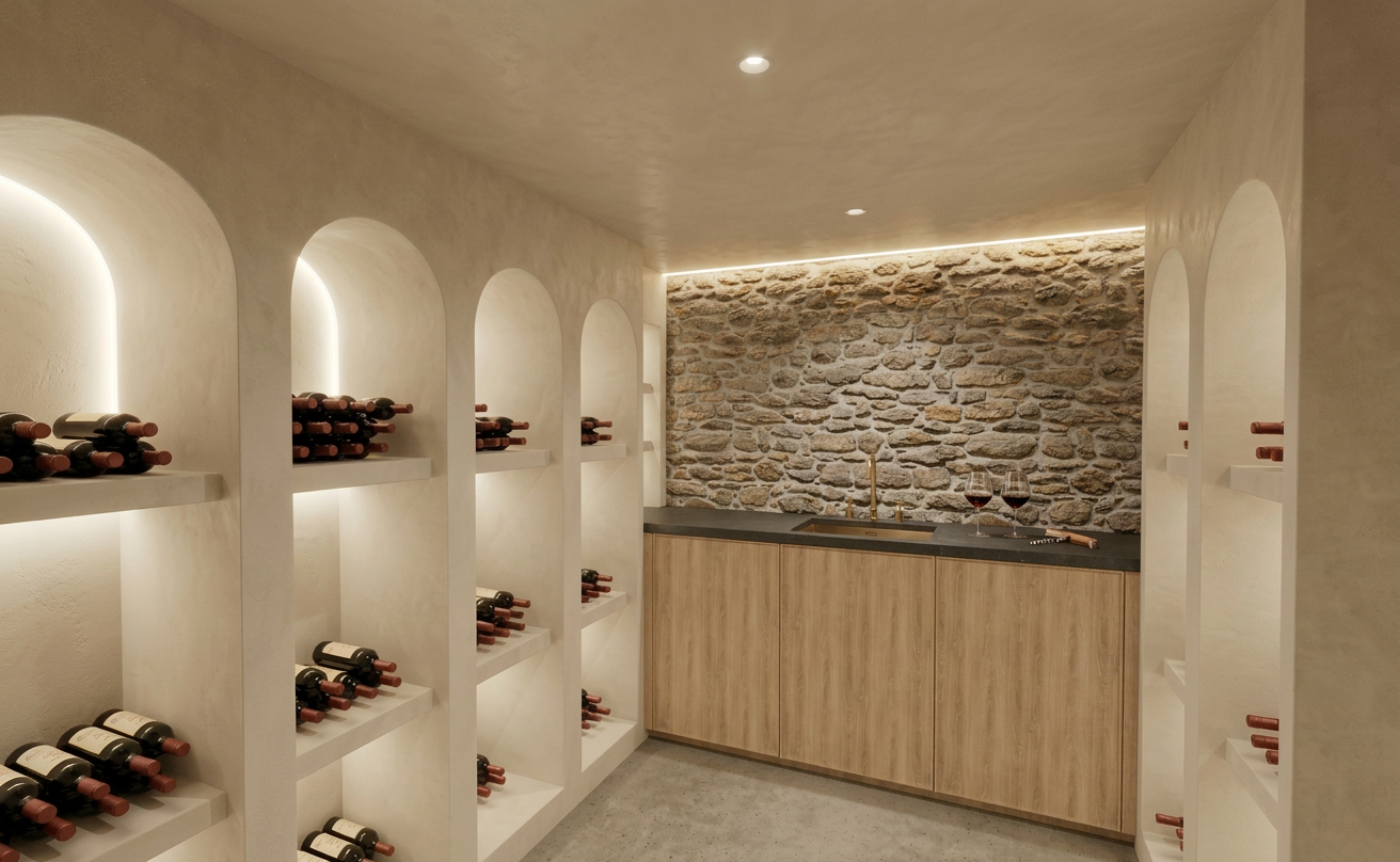 create a photorealistic architectural visualization based strictly on the provided revit view of the living room do not change the geometry layout proportions furniture placement camera angle or architectural elements preserve the exact design from the source image materials and details all furniture should be finished in warm walnut wood with natural wood grain the chairs must be completely deep burgundy replace the current grey headrest upholstery with deep burgundy so the entire chair seat backrest and headrest appears burgundy the rug should be light colored soft beige or light cream with a subtle texture to brighten the interior windows add light curtains next to the windows the curtains should be light airy and neutral white or soft beige fabric and hang naturally curtains should look minimal and elegant allowing natural daylight to pass through lighting add realistic interior lighting with soft natural daylight and subtle artificial lighting to enhance depth and realism use physically accurate shadows reflections and global illumination rendering style ultra realistic materials and textures high quality reflections soft shadows and ambient occlusion architectural interior photography style elegant modern interior atmosphere important do not redesign move add or remove any objects except for the curtains keep the original revit composition exactly the same and only improve realism lighting and the specified materials