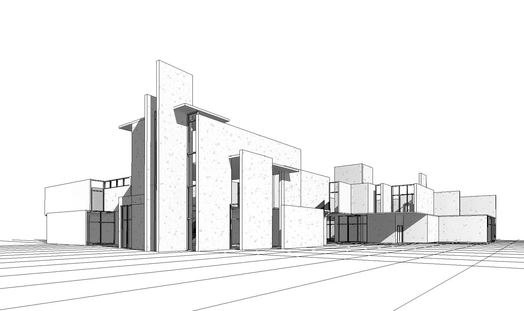 show this build with a brick facade xeriscaping and dark colored roofs