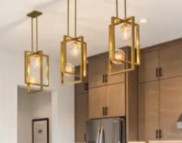 exterior shot keep colors the same add 3 pendants over the island