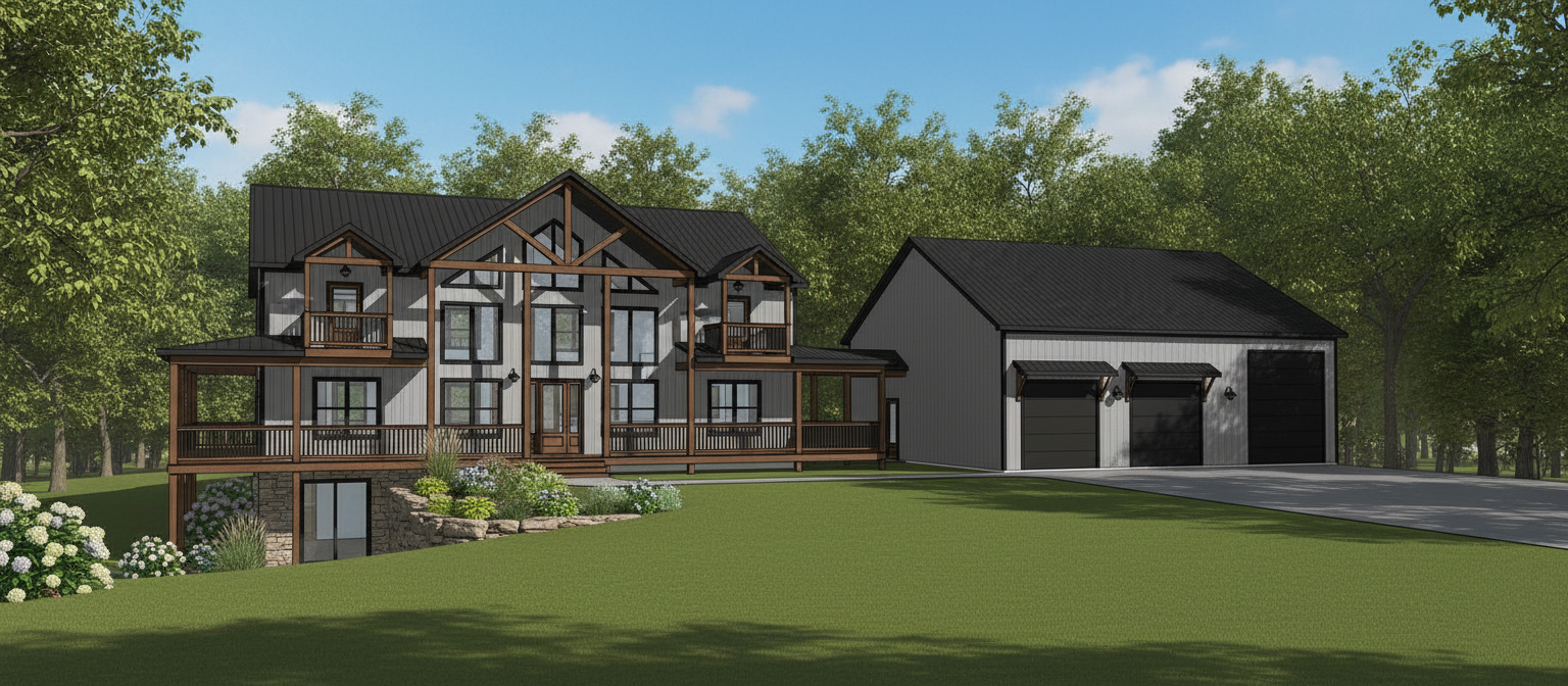 replace brown stone by matching existing bleck stone make the stone color black make the stucco and cornice color white