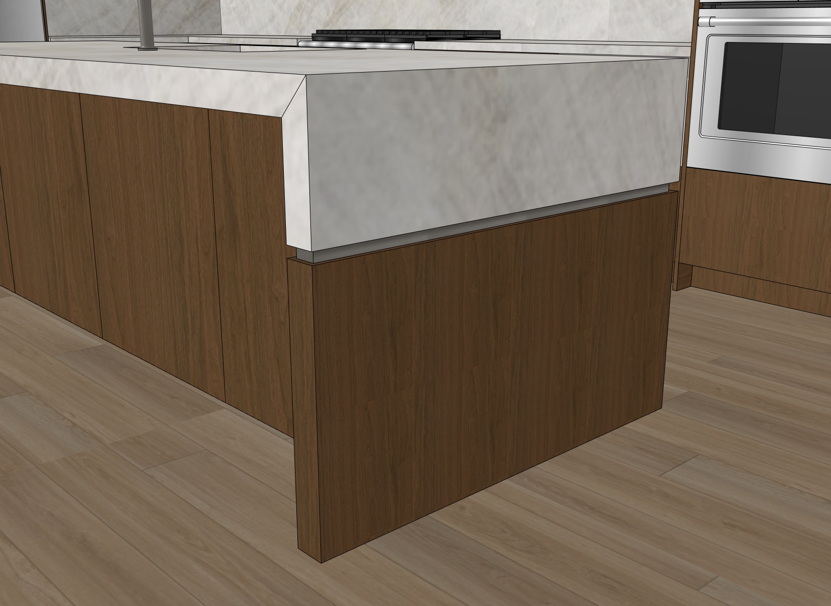 render the kitchen island edge detail to showcase the design detail the small 1 reveal in the middle is a graphite steel keep all of the materials and geometry the same and intact make the wood more uniform and less stripey