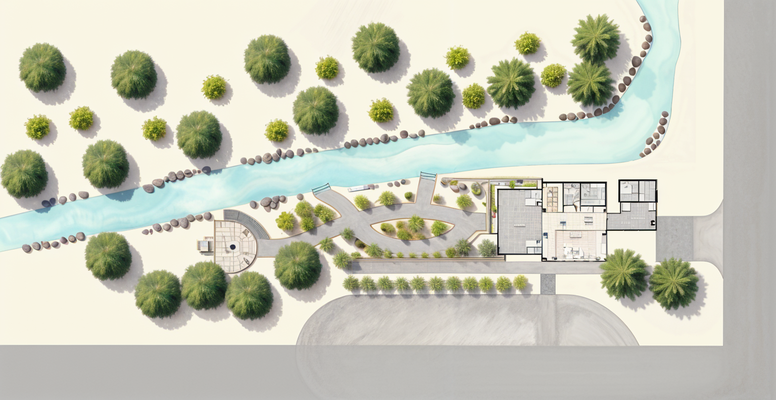 exterior shot landscaping driveway through porte cochere sidewalk from driveway to both front entrances dark stained beams and columns