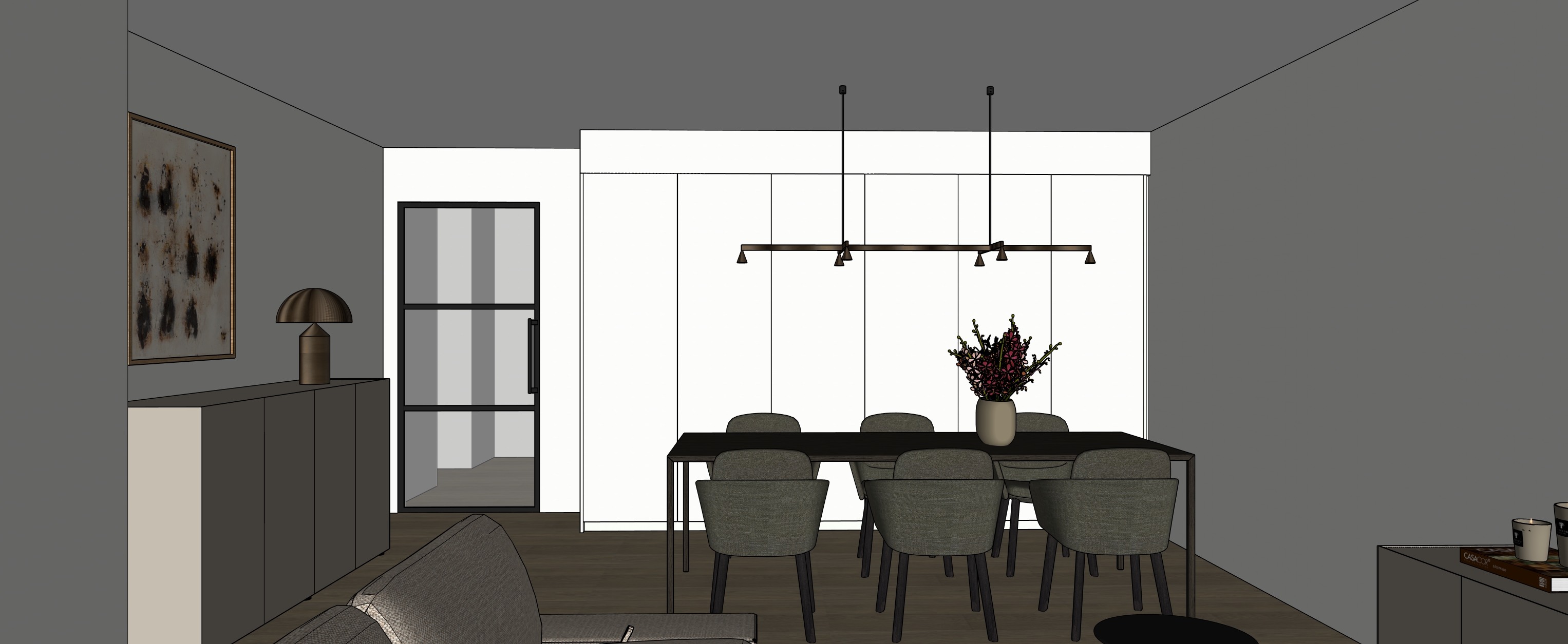 realistic interior shot natural daylight keep materials en colors floor is light oak lamps are softly on