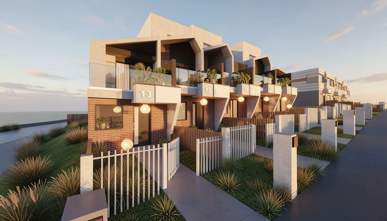 create a photorealistic architectural render of this image it s located in gowrie act show maintained garden outside windows kitchen is mdf walls and ceilings are white plaster