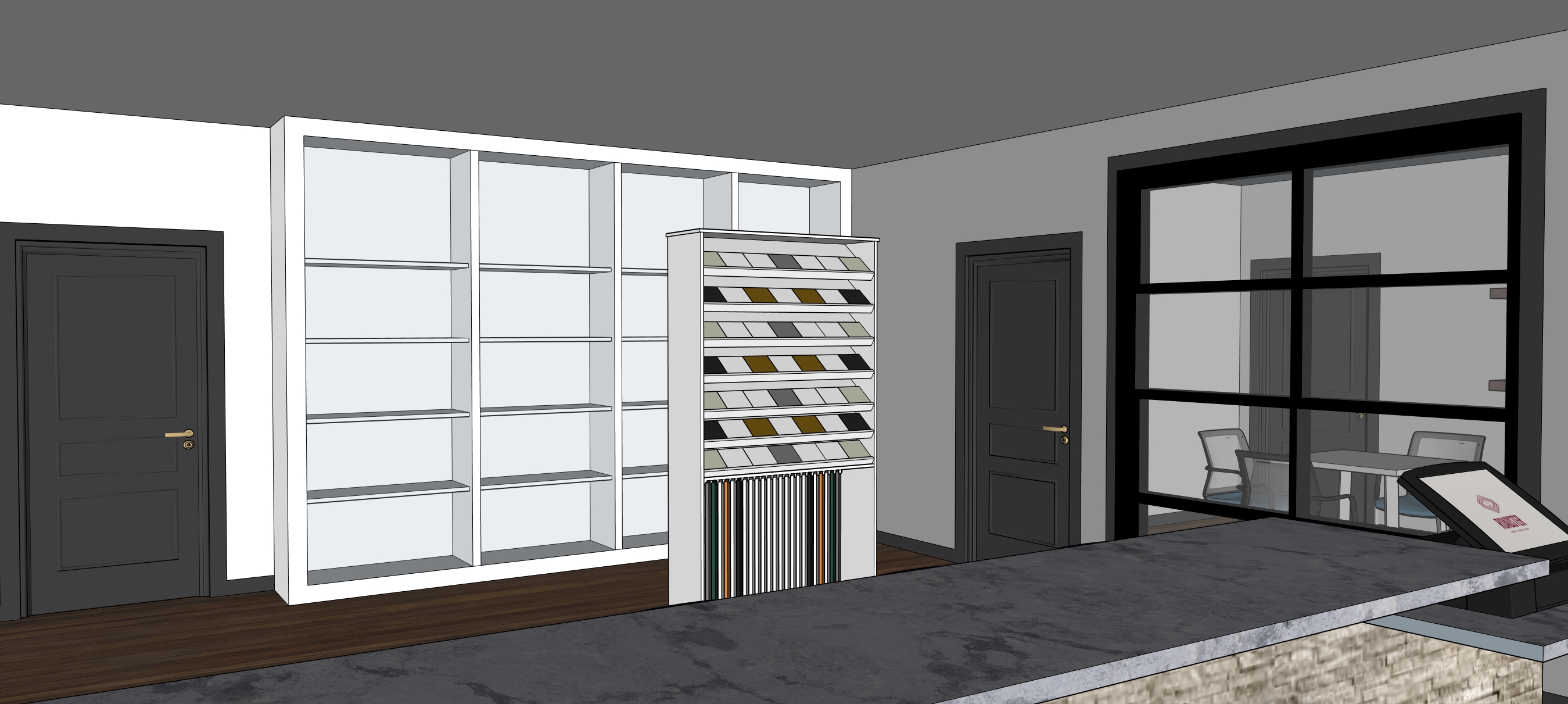 all office wall decor add awards into glass display case add ceiling can lighting make realistic add people