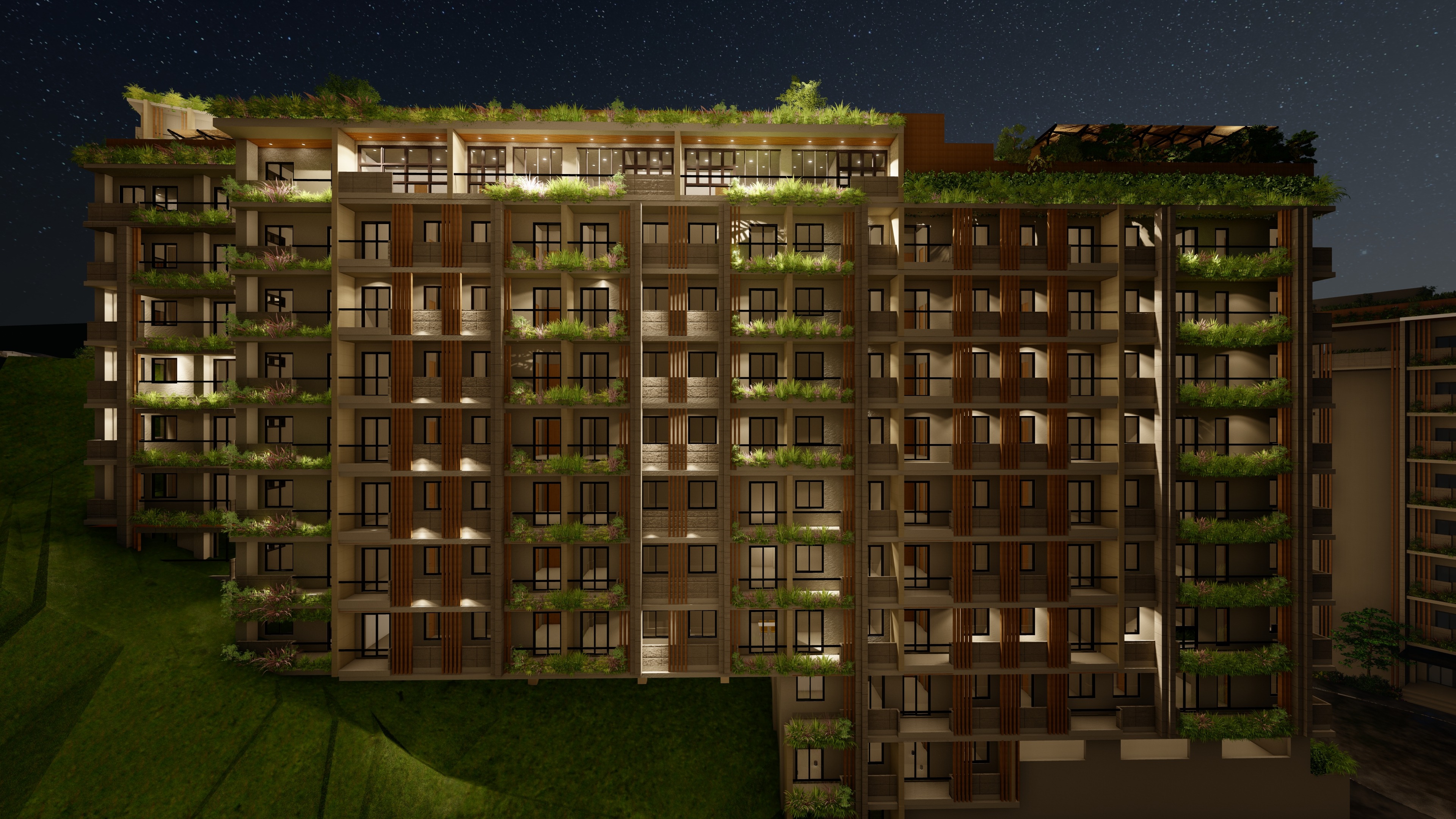 modernist exterior shot modernist exterior shot night lighting modern contemporary materials in warm gray tones wood slats in the facade cinematic photorealistic 4k resolution 16mm camera lens san mateo rizal valley in the far background add planters hanging plants in every balcony looks like a real estate photograph not a 3d render looks like a real estate photograph not a 3d render do not change the signage at the front night lighting modern contemporary materials in warm gray tones wood slats in the facade cinematic photorealistic 4k resolution 16mm camera lens san mateo rizal valley in the far background add planters hanging plants in every balcony looks like a real estate photograph not a 3d render architecture cinematic photorealistic 4k resolution 16mm camera lens metro manila city skyline in the far background looks like a real estate photograph not a 3d render the scene is night time make the sky night architecture