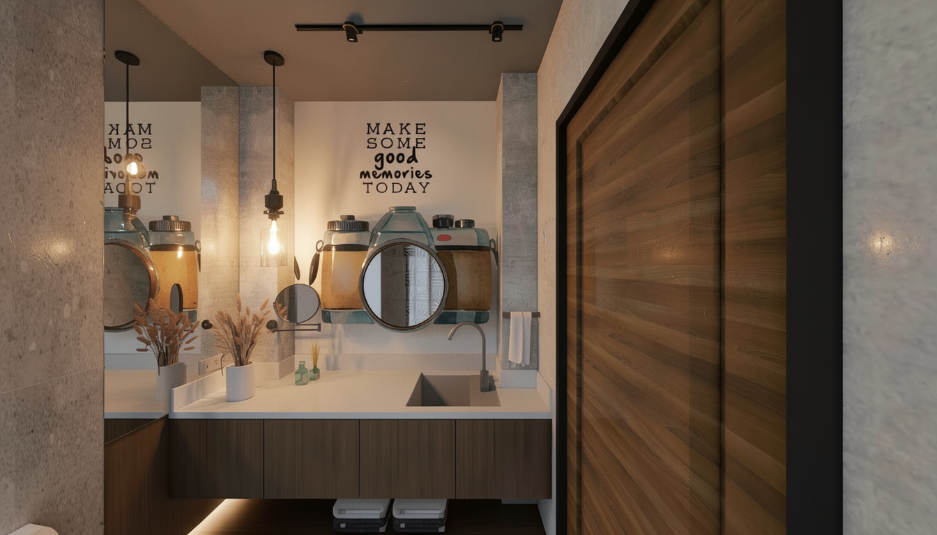 maintain colors and textures reflect right the pendant light in the mirror daylight