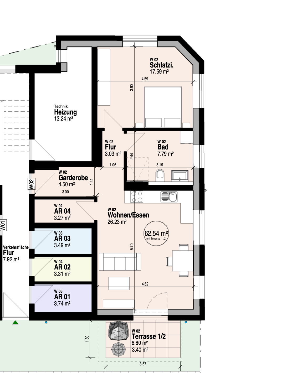 convert this floor plan into a realistic isometric 3d view of a full house show the space from an elevated angle with furniture walls and details visible use nordic style furniture the bathroom walls are white and the tiles are 60x120cm use the same furniture as shows on the plan do not change the orientation of the floorplan