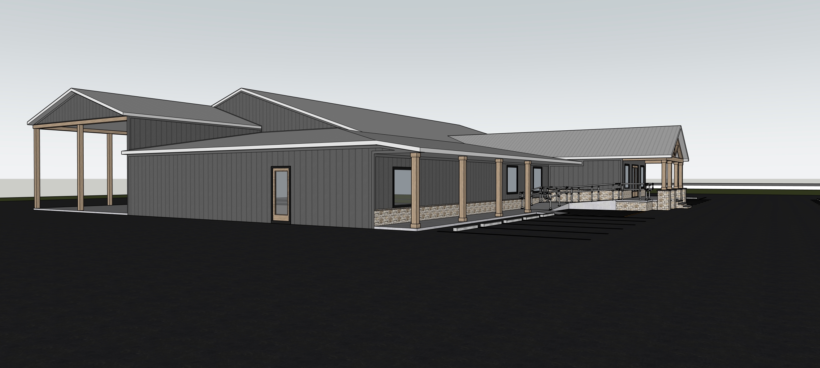 trees in background add some landscaping make realistic add vehicles in parking lot