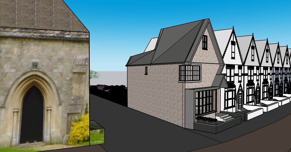 ultra realistic high resolution architectural photograph based exactly on the geometry and composition of uploaded sketchup image the main building must be focused with the clear lighting buff facing brickwork with the black frame metal roof covering and timber fence on the back standing seam metal remove any unwanted lines from the elevation all the materials in the sketch turn into realistic texture under soft light keep the environment very similar in the image make soft professional architectural style photography with no changing or adding any element highly detailed textures 4k resolution with wide angle view