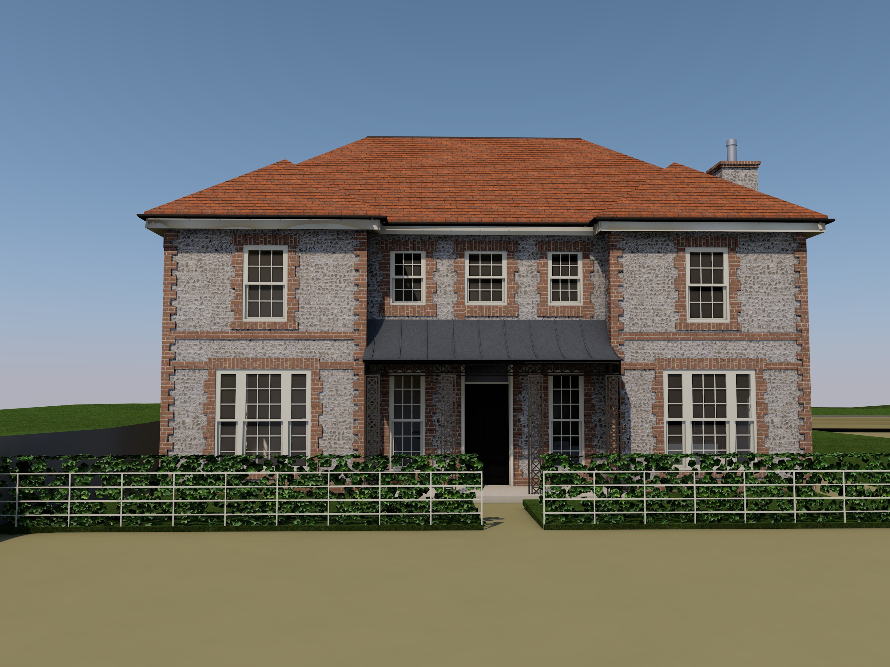 dont change house designs but make the image hyper realistic keep the materials the same but add planting that looks classy and trees in the background keep the entrance porches as designed and dont add any extra detail to the architecture