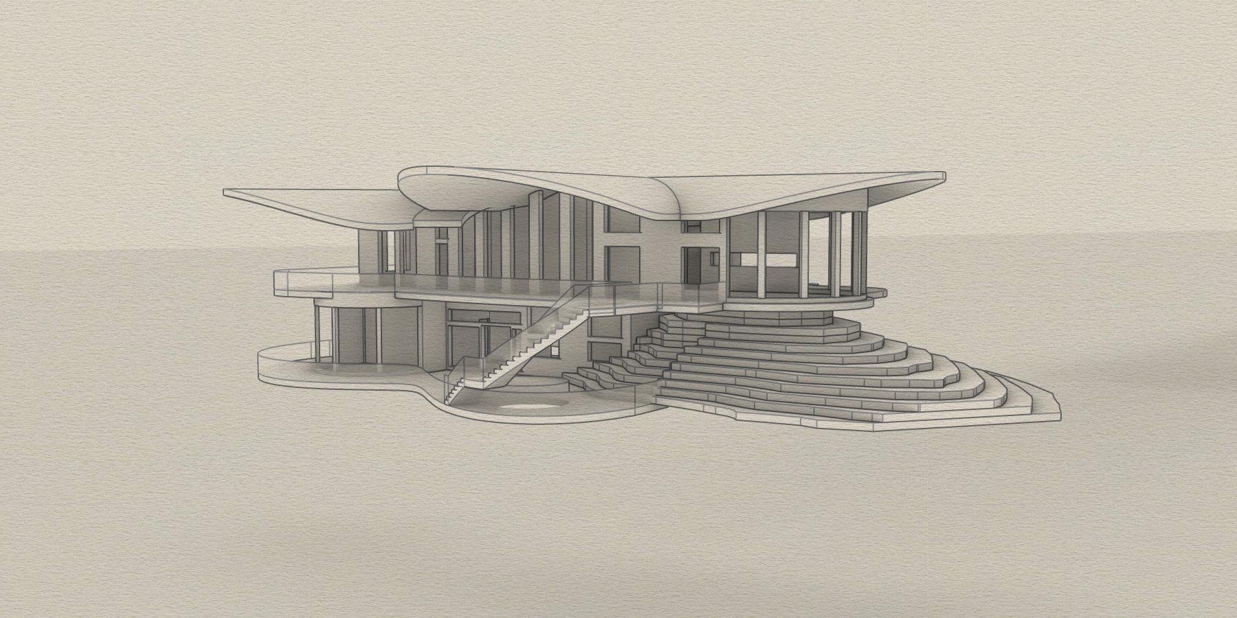 architectural watercolor rendering of a small contemporary research station perched on a rocky cliff structure made of warm wood black steel and glass precise and realistic architectural detailing cantilevered over stone terrain supported by steel beams surrounded by mountain pines and mist below rendered with crisp building geometry and realistic materials background and edges dissolve into loose watercolor washes and white paper edges not full bleed with soft unfinished fade around the image visible pencil and ink linework with light technical annotations artistic yet grounded balance of precision and painterly abstraction calm morning light concept architectural visualization style do not change geometry
