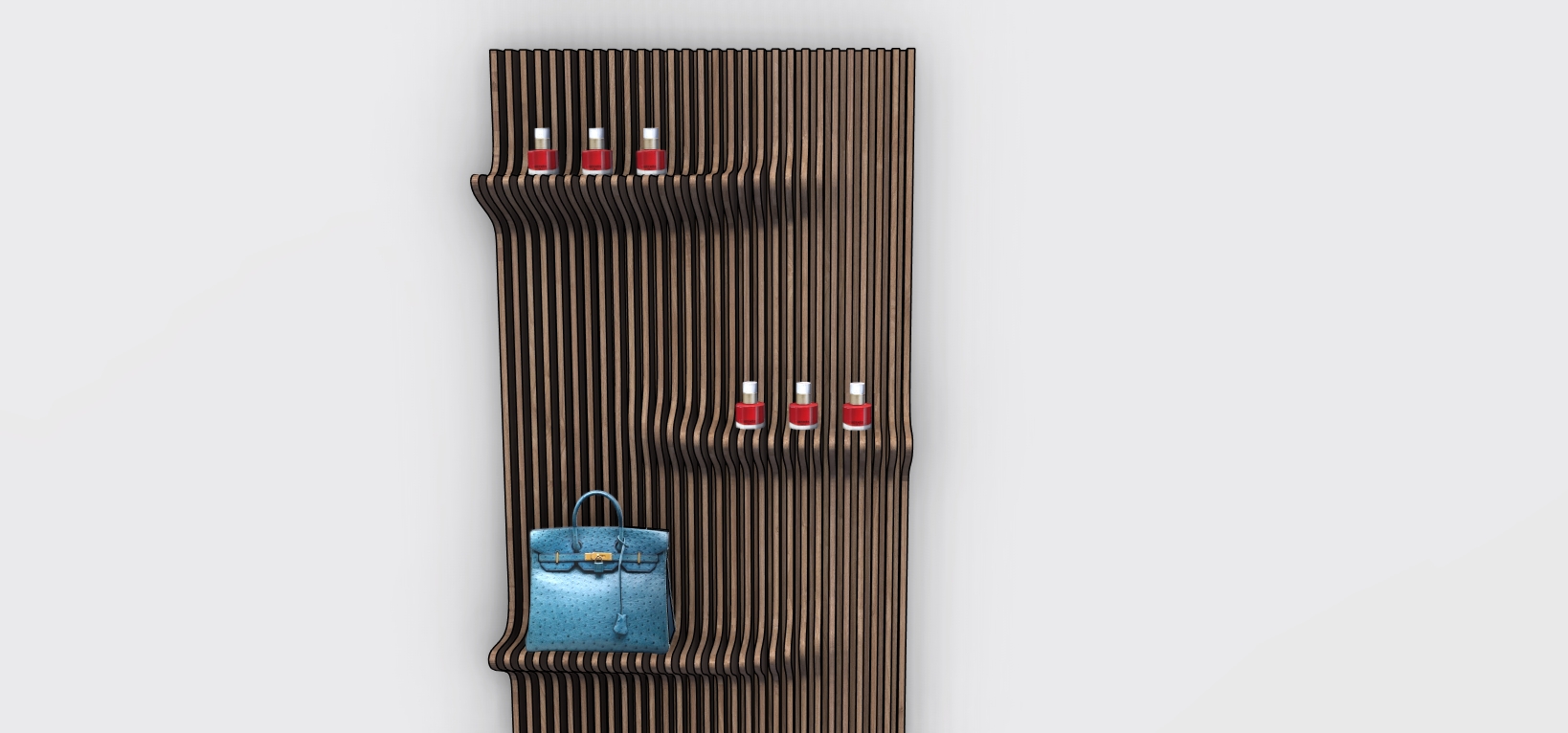 ransform this image into a high quality realistic interior render place the scene inside a modern master bedroom master cluster of a house with a clean elegant and cozy residential atmosphere keep all objects proportions scale and layout exactly as they are in the original photo only modify the following change the nail polish bottles so they have random assorted colors different shades and tones not all red everything else must remain unchanged same objects same positioning same shapes labels and details add soft natural lighting realistic shadows and subtle reflections to achieve a professional interior design render inside a master bedroom style modern residential clean warm realistic high end render