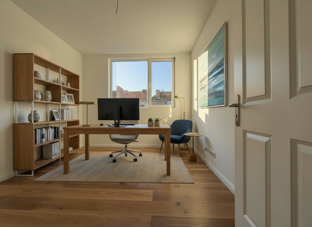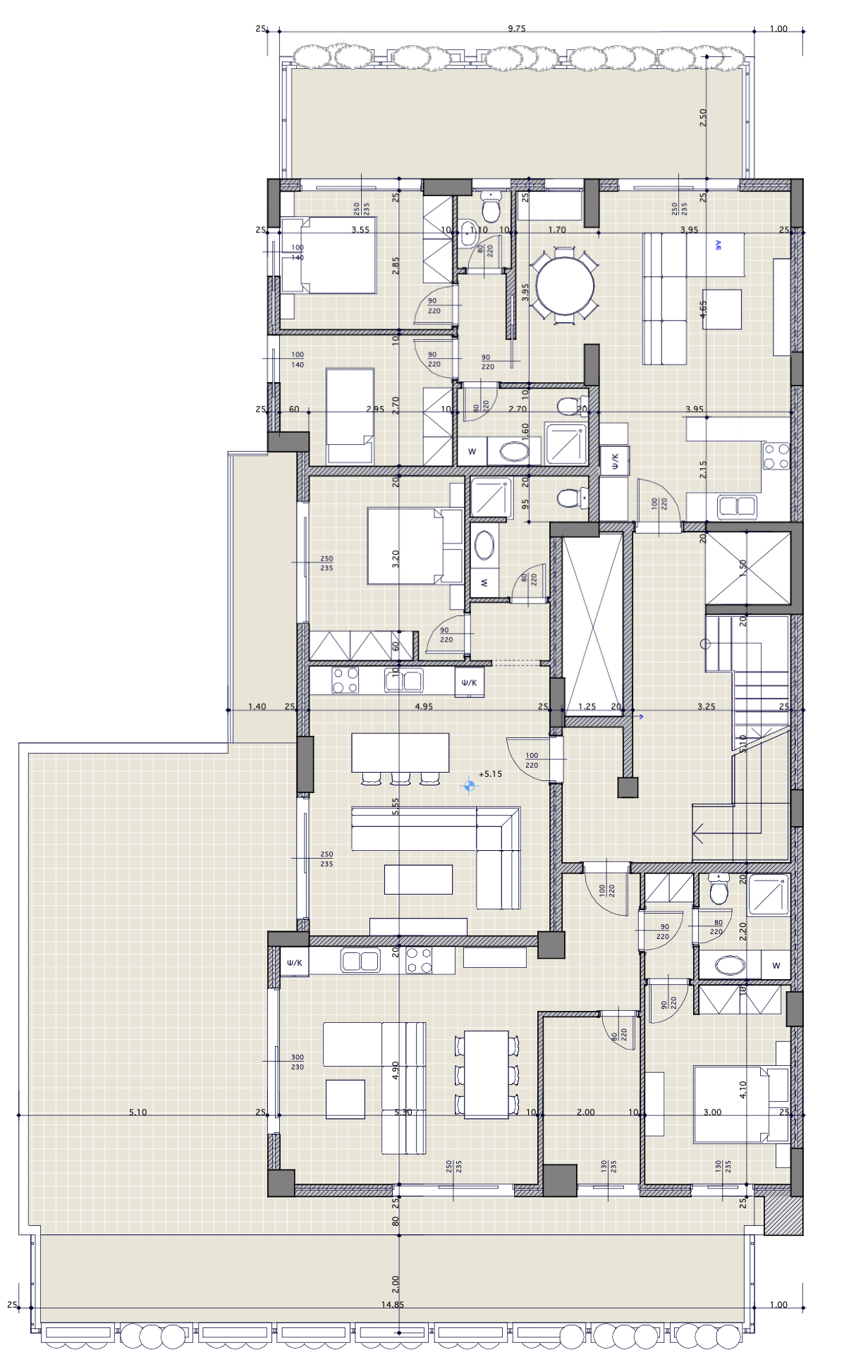 convert this architectural floor plan into a high end colored presentation plan strict rule keep exact original walls layout dimensions openings and structure do not modify move or redesign anything style modern luxury developer brochure clean top down 2d materials light natural wooden flooring in living bedrooms neutral beige stone tiles in bathrooms colors earthy palette beige warm white sand taupe soft variations to distinguish different apartments furniture minimal realistic properly scaled warm neutral tones clarity clearly separate each apartment a b c clean white walls subtle shadows output high resolution sharp professional real estate presentation avoid cartoon or artistic interpretation