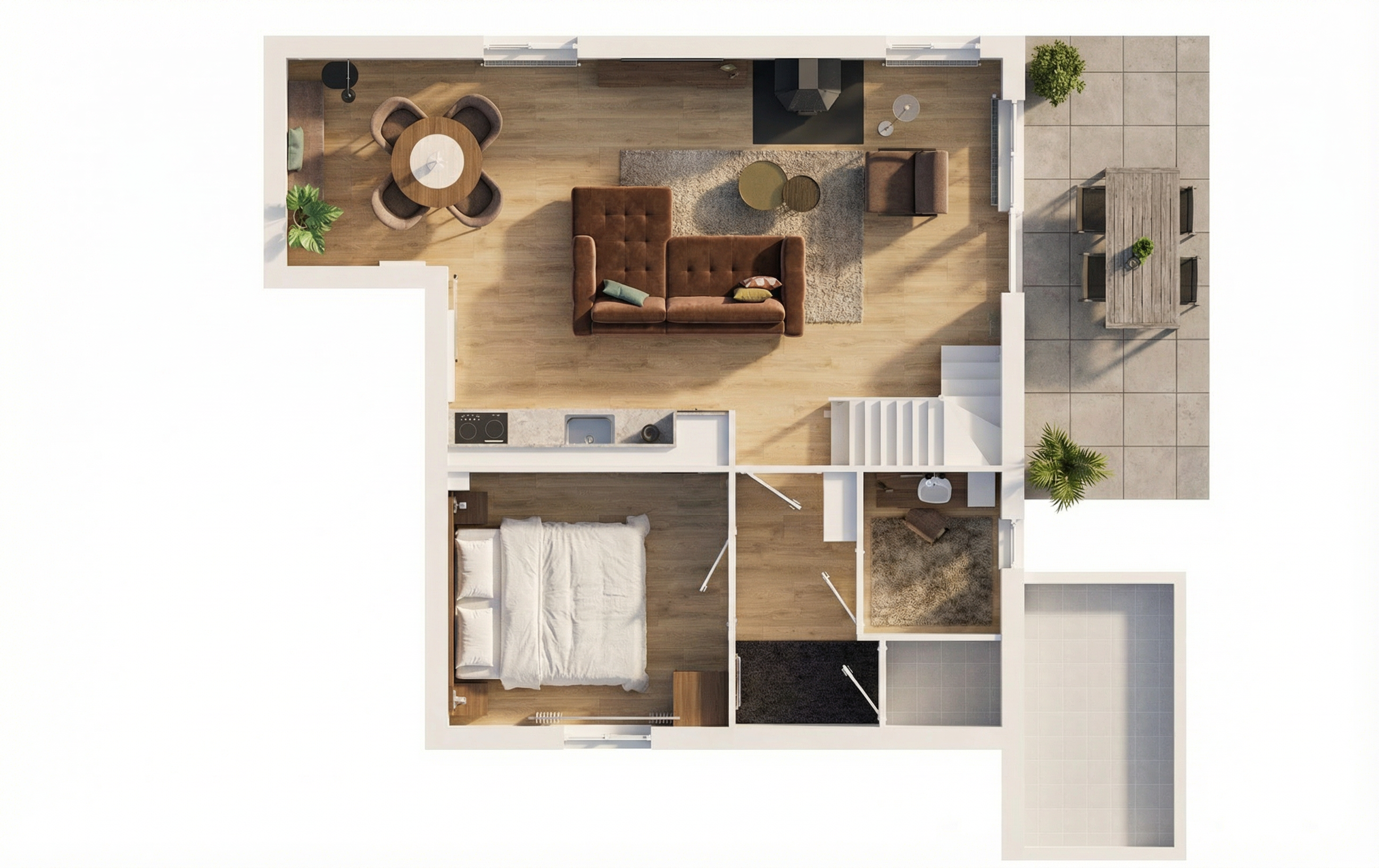 have daylight come in the house not too much just make the image realistic keep the colors and textures as the input image