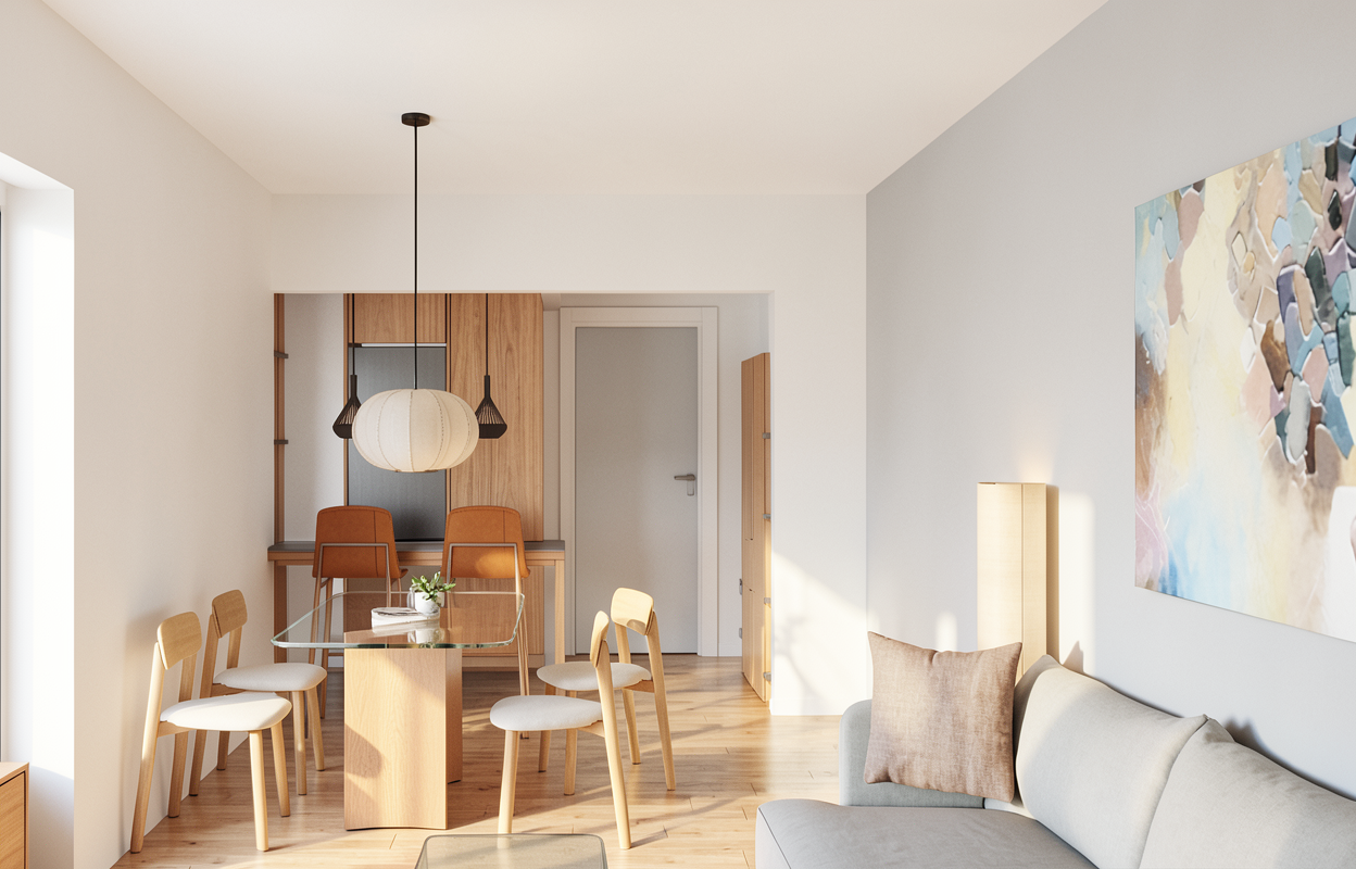 create a photorealistic architectural visualization from the provided base image of a retail kiosk the geometry proportions and shape of the kiosk must remain strictly identical to the reference image do not modify redesign simplify or reinterpret the structure only add materials lighting environment people and products environment place the kiosk inside a modern european shopping mall interior inspired by aupark environment characteristics contemporary shopping mall atrium polished stone or terrazzo floor glass railings and shopfronts in the background neutral interior tones white light grey beige diffused daylight from skylights combined with soft mall lighting the environment should look realistic but not overcrowded material specification critical the kiosk should be visually unified in one yellow color palette but materials must be strictly separated vertical prisms only these elements only the vertical prism elements of the kiosk are made of wood material stained beech wood appearance yellow stained tone visible natural wood grain matte or satin finish natural wood texture clearly readable important rule wood material must appear only on the vertical prisms all other kiosk surfaces all remaining parts of the kiosk must be made from material colored mdf board valchromat appearance yellow tone matching the stained wood matte finish subtle valchromat fiber texture important rule no wood texture is allowed on these surfaces these surfaces must clearly read as colored mdf panels storage space under the counter under the counter there is a storage space for products exactly as visible in the reference image rules the storage area must remain exactly as in the base image do not change its geometry size or position it should function as a practical storage zone inside the storage area place a small amount of merchandise or packaged craft products neatly arranged but realistic product display the kiosk sells handmade craft products display guidelines minimal amount of products curated selection clean and simple presentation focus should remain on the architecture of the kiosk signage sign material white pvc board installation suspended from thin steel cables appearance minimal and clean lightweight modern sign people add 2 4 people around the kiosk casually dressed shoppers natural relaxed poses possibly one seller behind the counter subtle interaction with the products people help communicate scale and realism lighting lighting should replicate realistic shopping mall conditions soft overhead lighting diffused daylight from skylights natural soft shadows warm neutral color temperature subtle reflections on the floor avoid dramatic cinematic lighting camera architectural photography style eye level camera slight wide angle approx 28 35 mm kiosk clearly visible and dominant in the composition realistic spatial depth rendering style highly photorealistic architectural visualization physically accurate materials realistic reflections and shadows subtle imperfections for realism critical constraints do not modify the kiosk shape do not change proportions do not redesign elements do not remove or modify the storage space wood material only on vertical prisms all other surfaces must be valchromat colored mdf included roof components