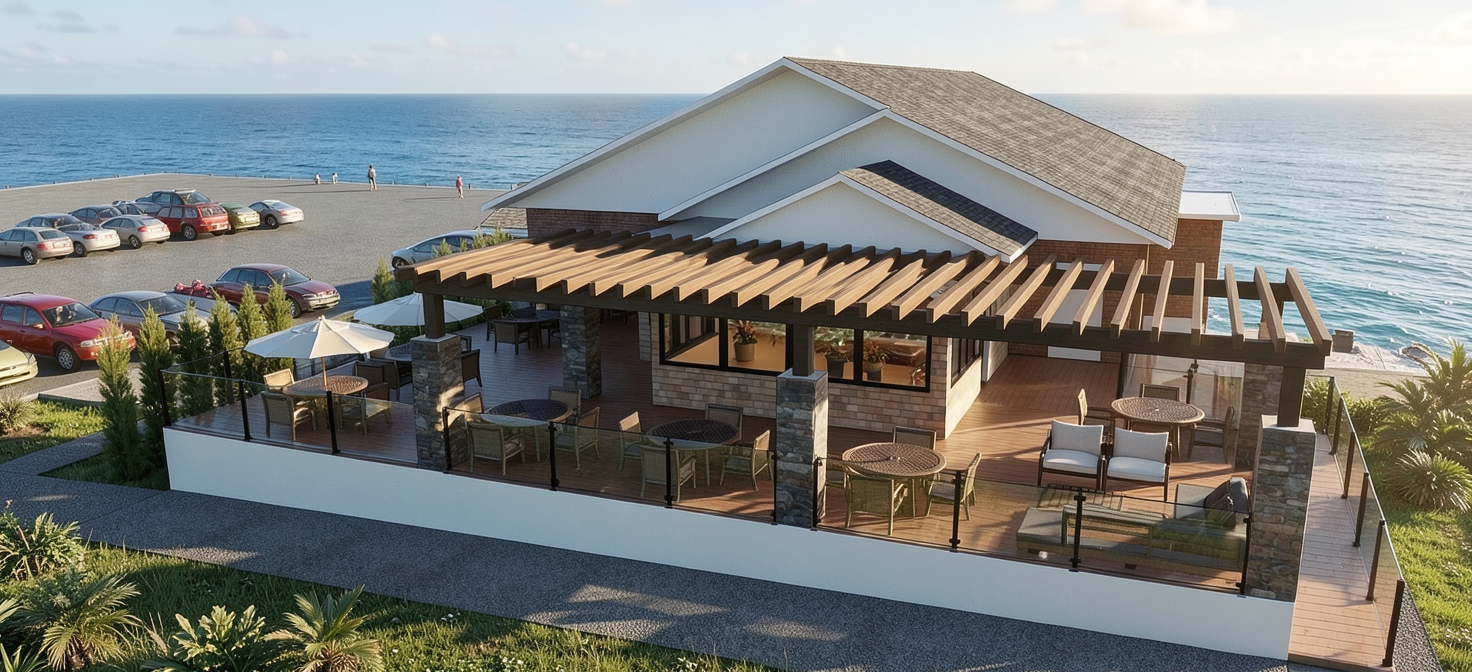 render a modern bathroom interior with an elegant minimalist design a large round black mirror is centered above a sleek vanity with horizontal wood grain drawers in rich walnut brown the countertop is made of polished off white stone to the right of the mirror there s a tall narrow section with vertical black slats complemented by a decorative arrangement of dried natural toned pampas grass in a simple gray vase the wall tiles are a subtle creamy beige adding warmth while the floor is a darker slate gray the atmosphere is serene and luxurious with soft ambient lighting enhancing the textures