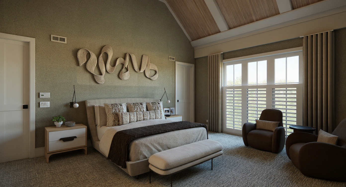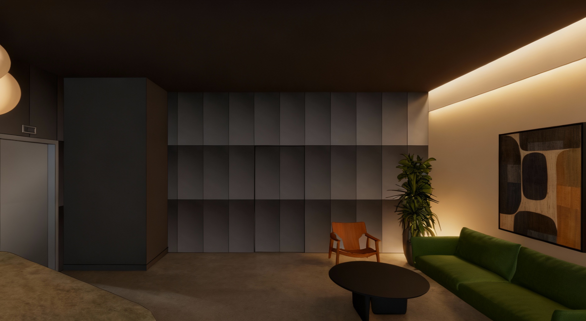 enhance this render to look more realistic improve lighting shadows reflections and material realism but do not add remove or alter any elements objects or materials keep everything exactly the same just make it more photorealistic architecture