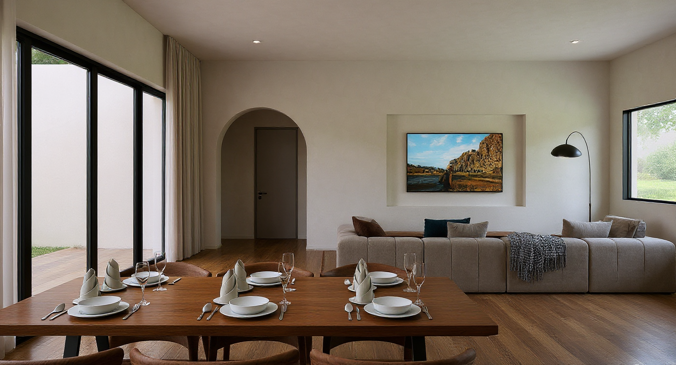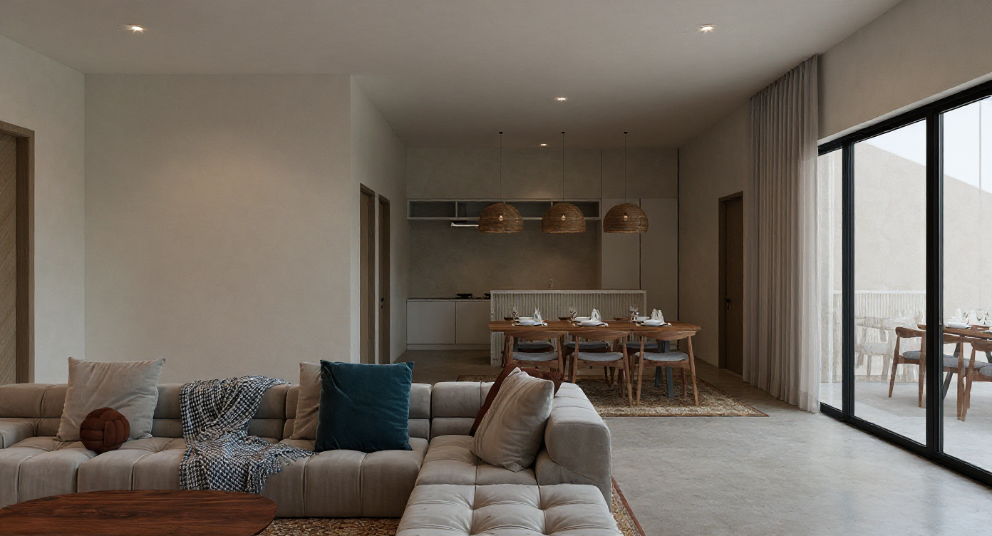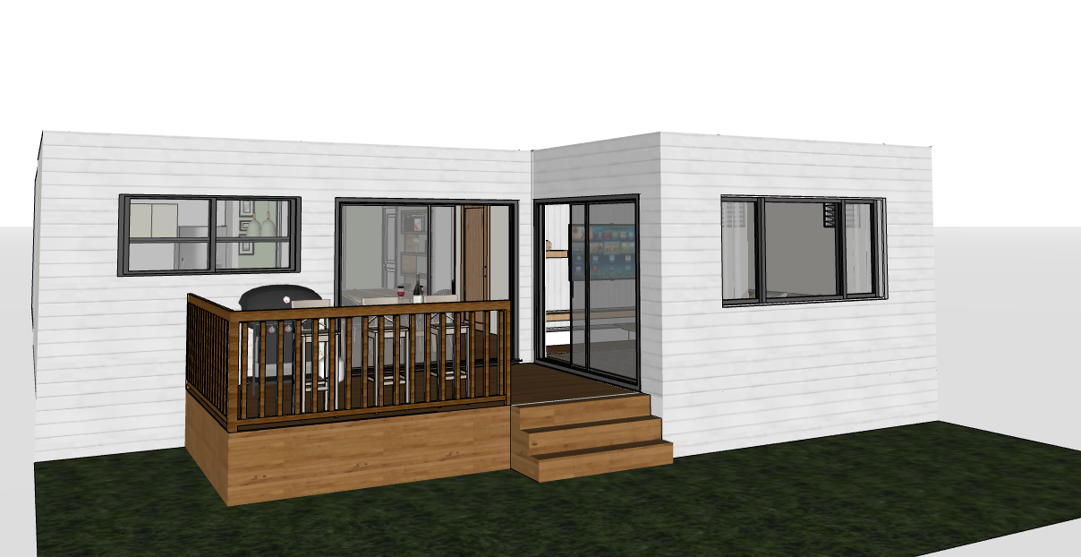 convert this image into a realistic 3d architectural render preserve all existing structures angles and proportions exactly as they are enhance the image with professional quality lighting shadows and textures for timber glass and landscaping maintain the original layout and design but make it look polished visually striking and like a high end 3d visualization
