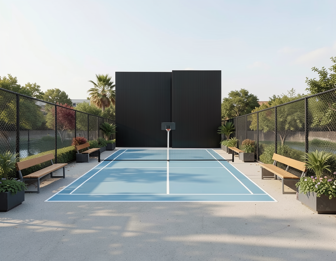 make this photo realisitic do not change colors or geometry set the scene as mid day