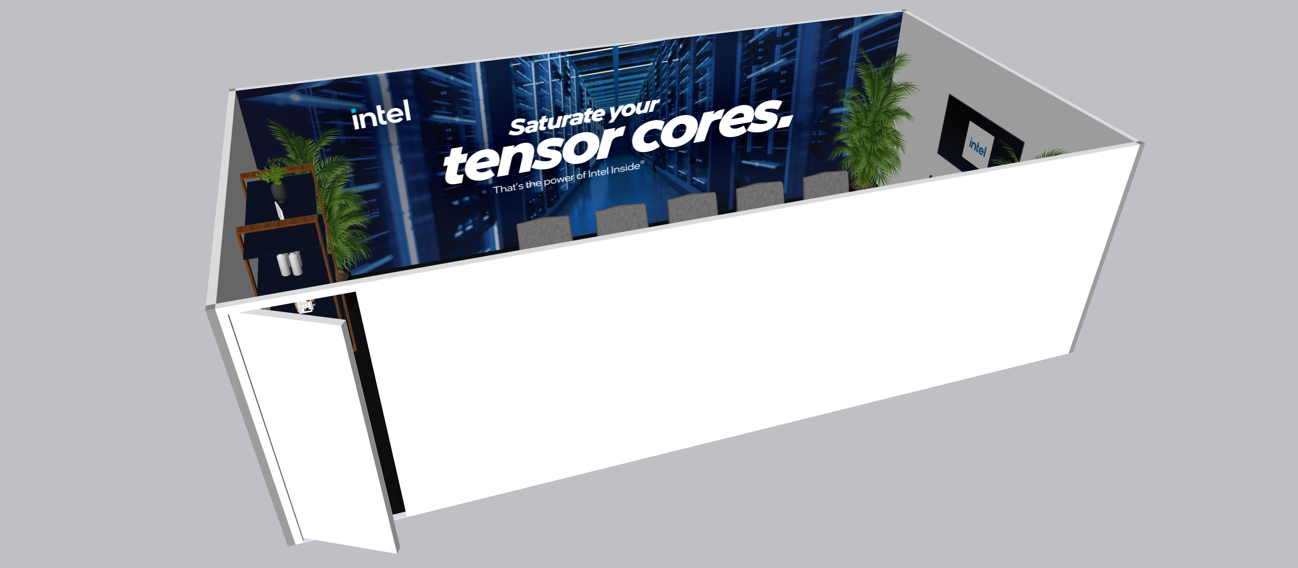 make photo realistic do not change colors or textures or add or remove anything do not change the color of the shelves in the shelving unit preserve 16 9 aspect ration of image do not add indirect lighting and use a clean white global illumination