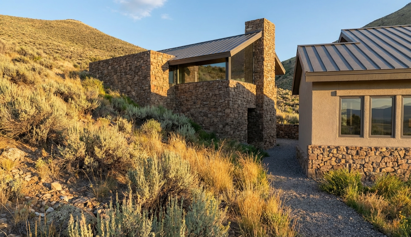 have a light warm external timber paneling on the walls have the roof and trim colours be a beige with australian native plants in the garden