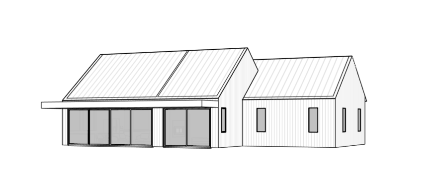 home in the colorado foothills with vertical grey wood siding dark metal roof interior lights