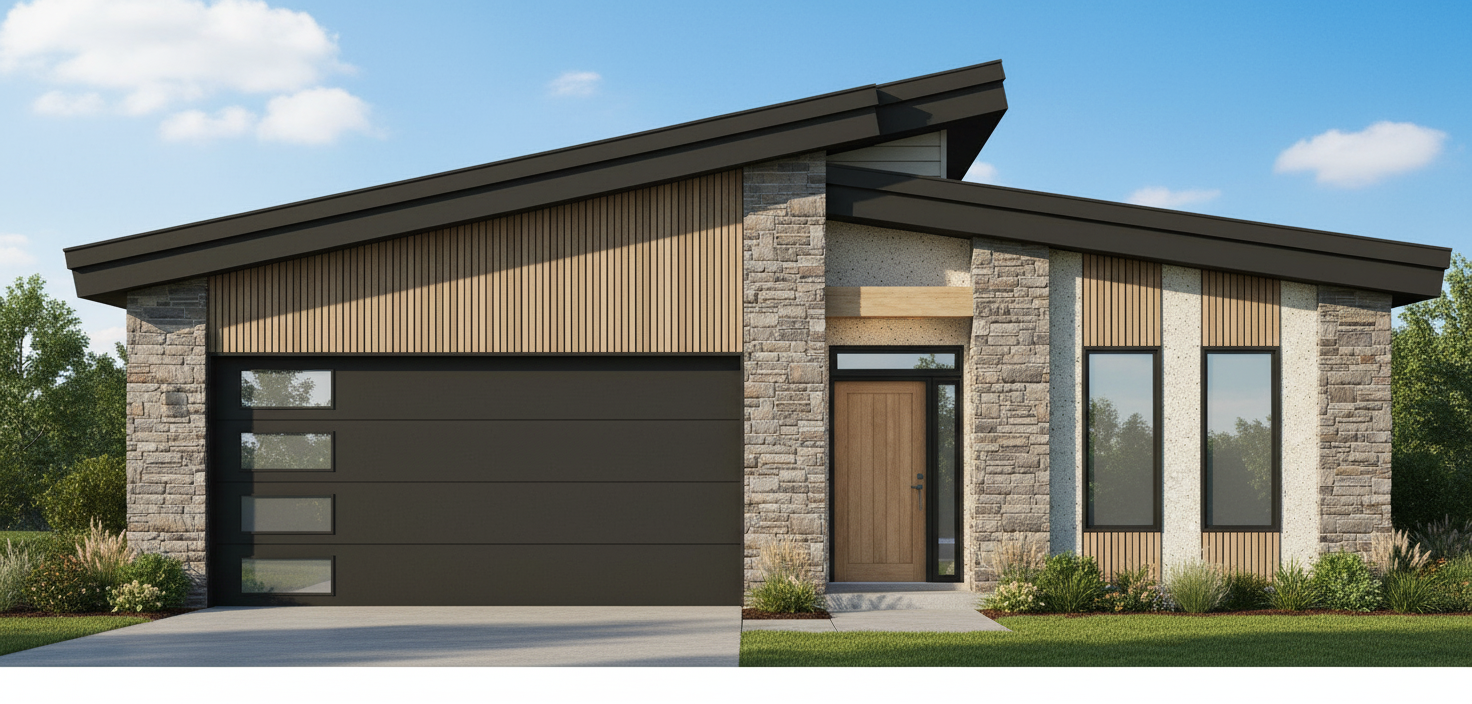 there are parking spots on the back side with a large planter on the left side of the building a tree line of pine trees is in the background about 100 feet in distance