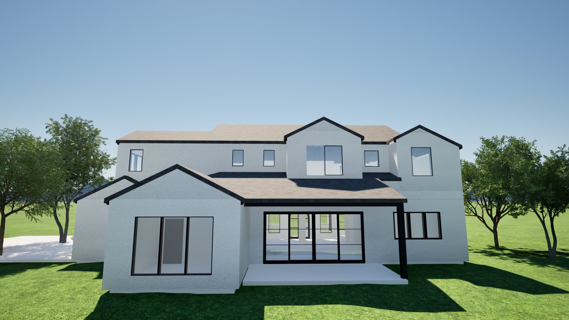 warm white stucco change landscape bushes and flowers show furniture inside time of day sunset