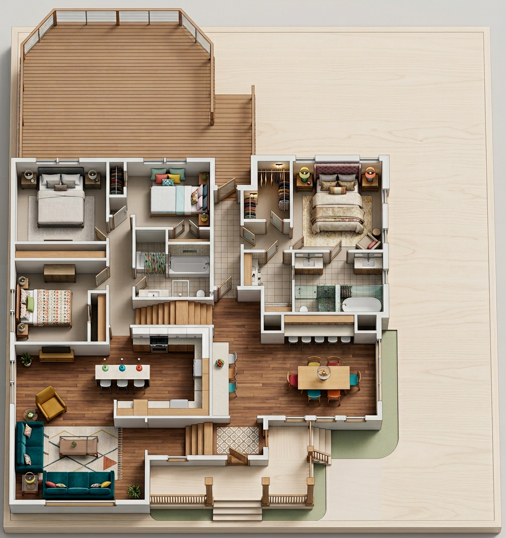 show floor plan show medium hardwood through out show medium size furniture concrete floor in garage show text and room sizes