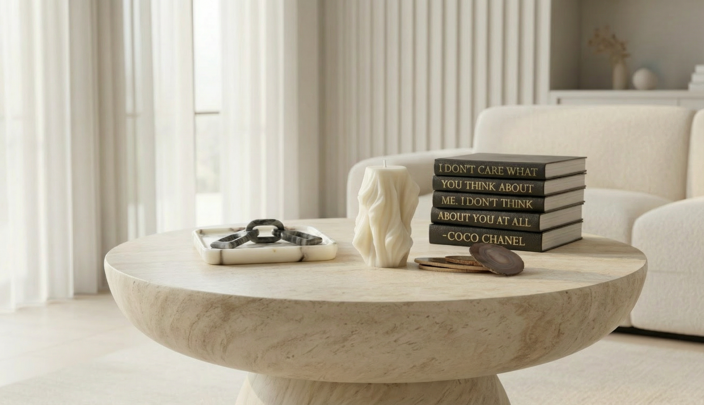 create a detial close up photo shot of just the items on the coffee table