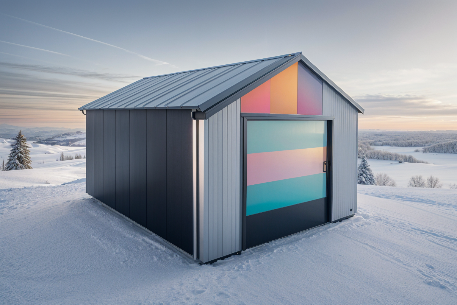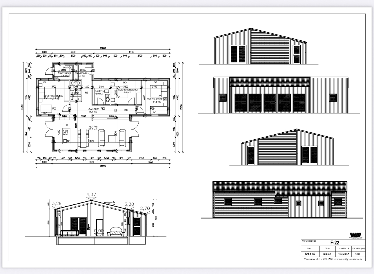 modernist exterior shot create a realistic 3d render of the uploaded house drawings apply vertical wooden cladding on exterior walls dark grey framed windows and a light grey pitched roof scandinavian countryside style soft daylight with natural shadows realistic proportions based on plan dimensions architecture