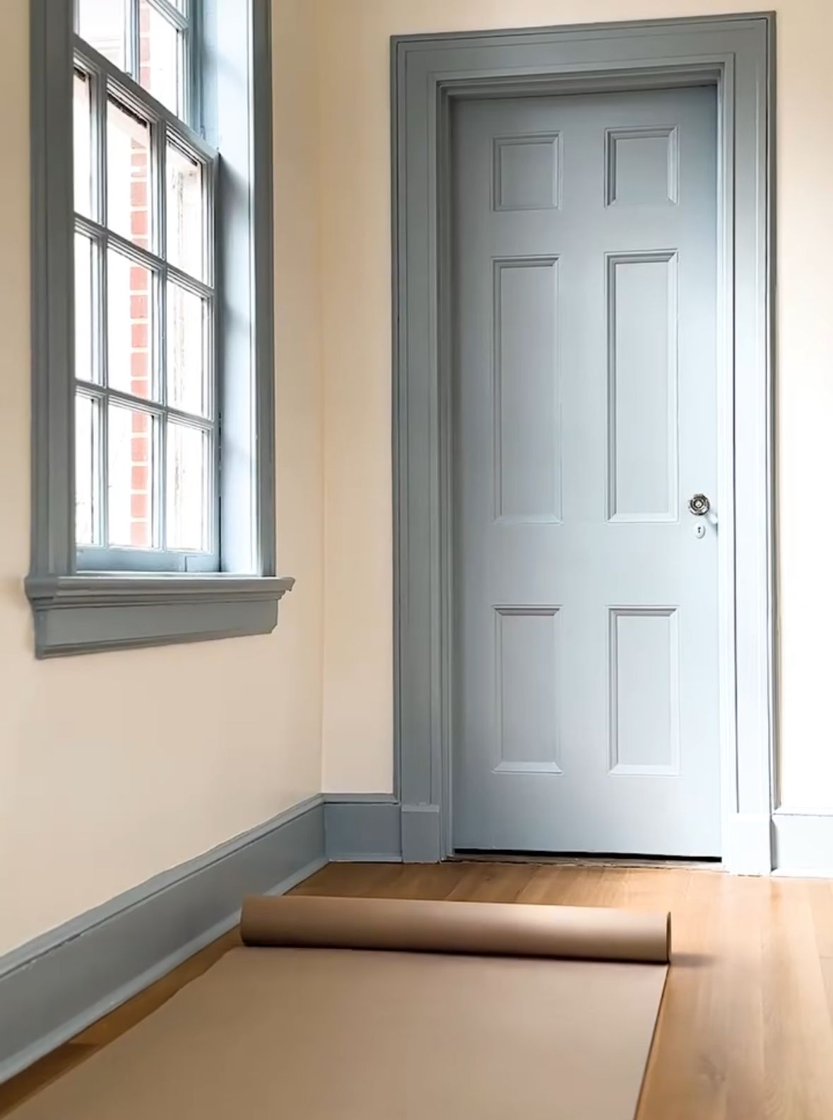 change the light blue color on door and trim to a burgundy