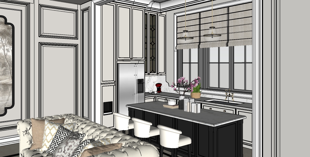 create an ultra realistic image without changing any of the structure shape design or materials don t resize the jpeg use a glossy light beige white marble top table kitchen brown glass cabinet off white wall