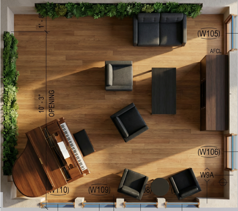 replace the chest on the right wall with a sofa right up against the wall dont move any other furniture