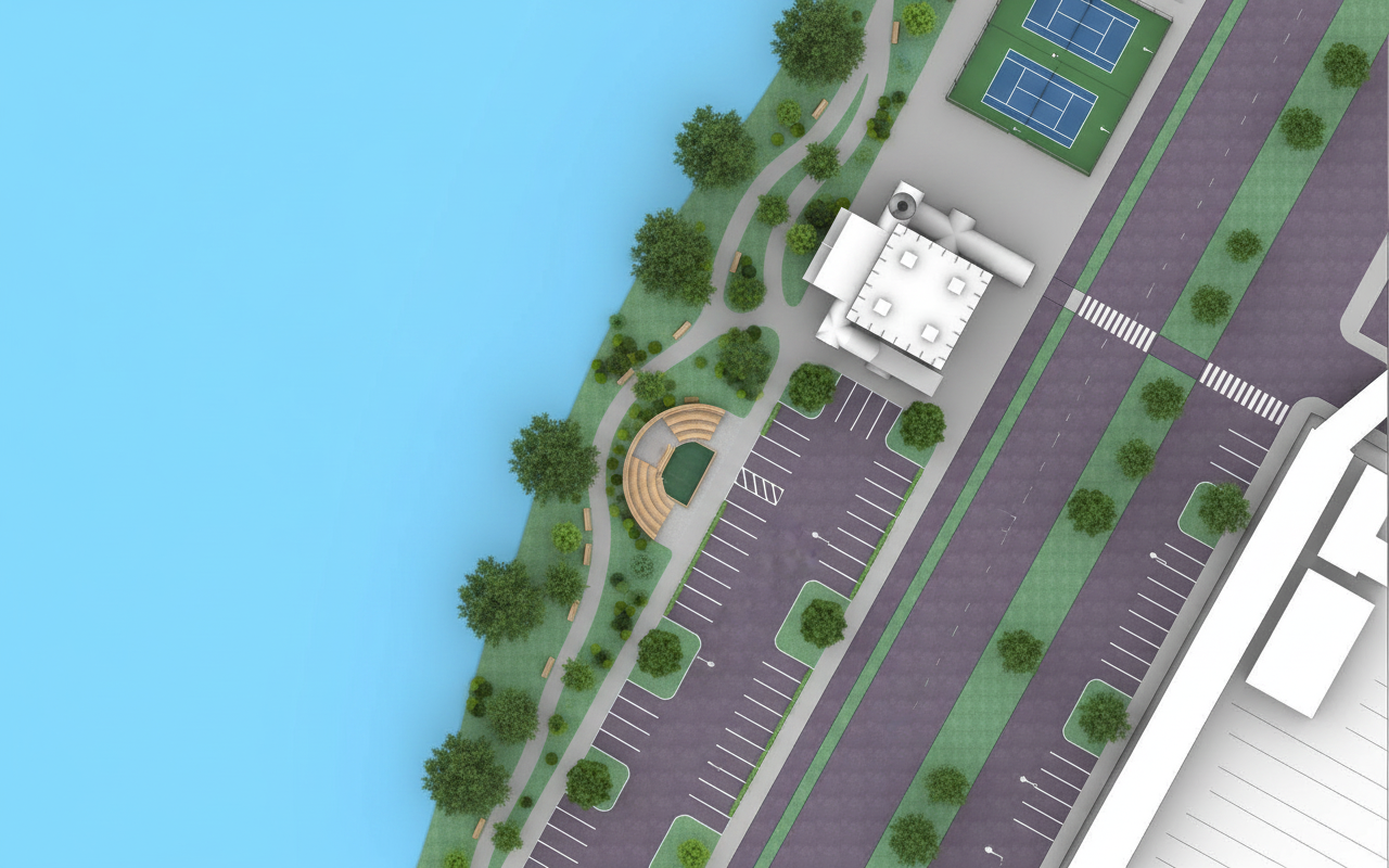 preserve the site scale footprint and camera perspective of the original image including landscaping and surrounding context make the massing more soft and not so rigid apply a full etfe facade system inspired by the beijing national aquatics center water cube featuring an irregular organic bubble like cellular structure with inflated cushions and visible seams the facade should be translucent with soft white and pale blue tones subtle reflections and realistic light diffusion the facade should seamlessly blend through the edges and wrap the building maintain a minimal number of clean integrated openings for entrances only seamlessly embedded into the etfe system the result should be a solid monolithic box wrapped in a water inspired bubble membrane ultra realistic architectural visualization high detail