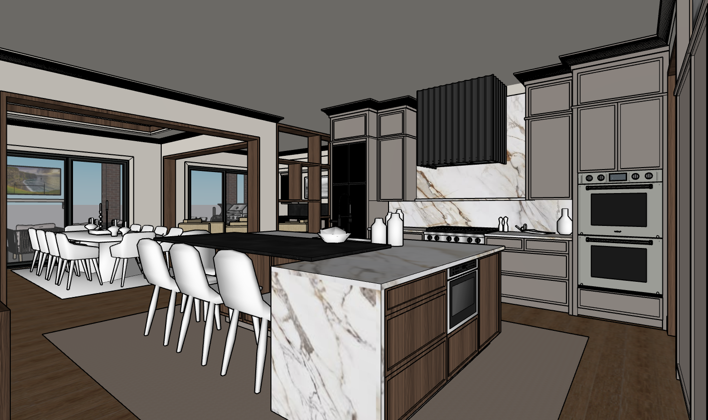 exterior shot hyper realistic architectural photography high end interior design luxury transitional home kitchen maintain the existing layout scale architectural details and camera perspective do not alter ceiling height window placement or overall room proportions design custom millwork throughout the space some painted naturel by sherwin williams with a warm natural finish all millwork hardware to be dark bronze for a cohesive elevated look within the millwork maintain proper scale and symmetry within the millwork layout trim above the millwork to be painted to match whatever is below it for a seamless transition and clean architectural recessed can lighting and add soft natural sunlight entering from the windows casting light across the floor and extending acrossf the room with realistic shadows and highlights create realistic highlights and shadows that enhance all textures ensure the overall aesthetic feels high end and cohesive with a balanced contrast between warm light oak textured wallcovering and brass accents the space should feel tailored sophisticated and softly illuminated realistic textures 8k resolution highly detailed shot on phase one xf global illumination raytraced reflections clean minimalist aesthetic