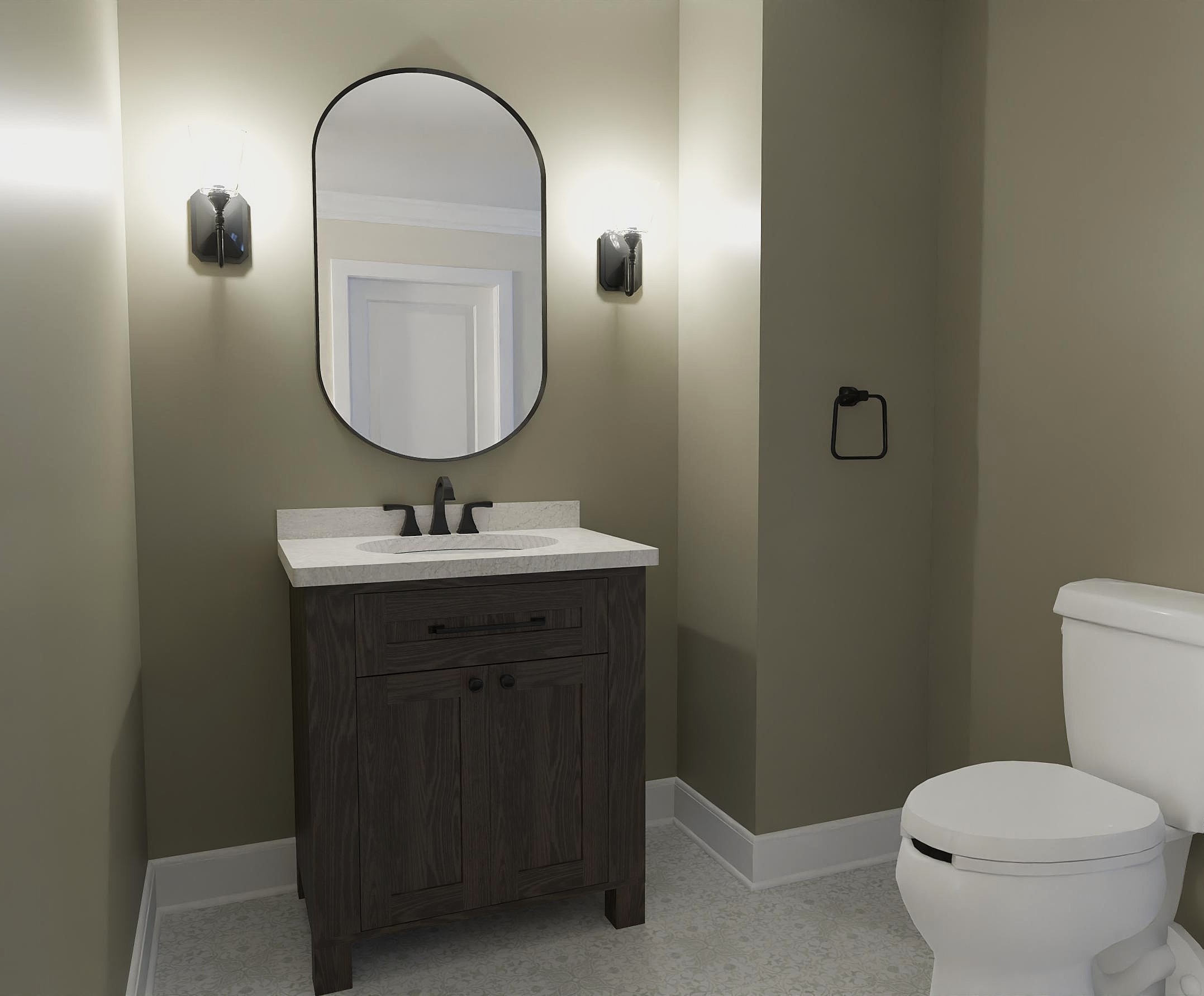 lightly accessorize this powder room please add a towel to the towel ring on the wall