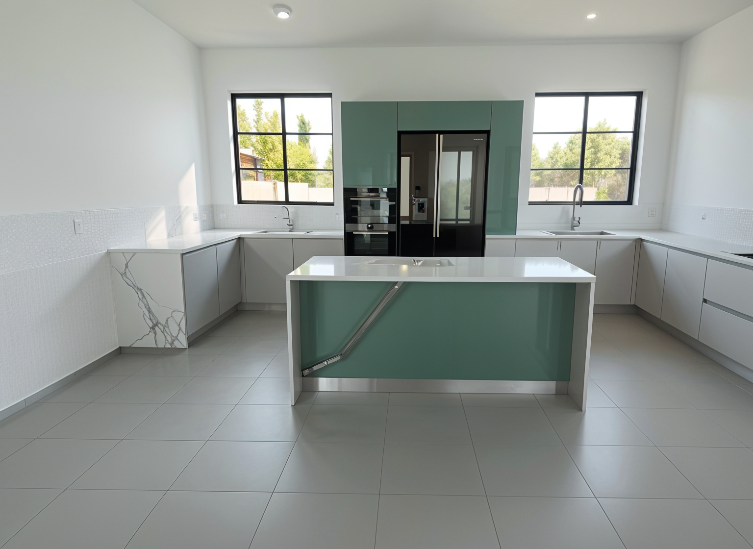 black house black windows lights brown stone