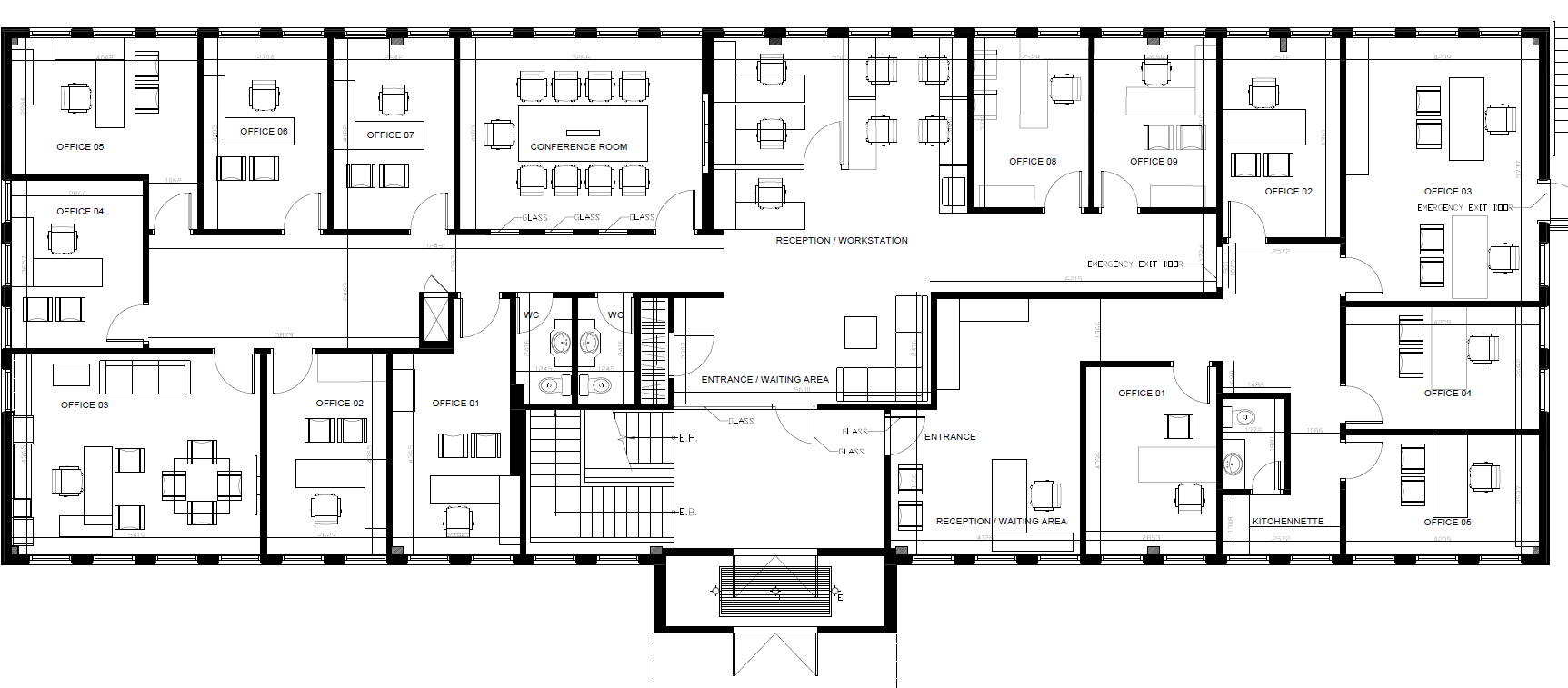 render this office layout plan and make it modern